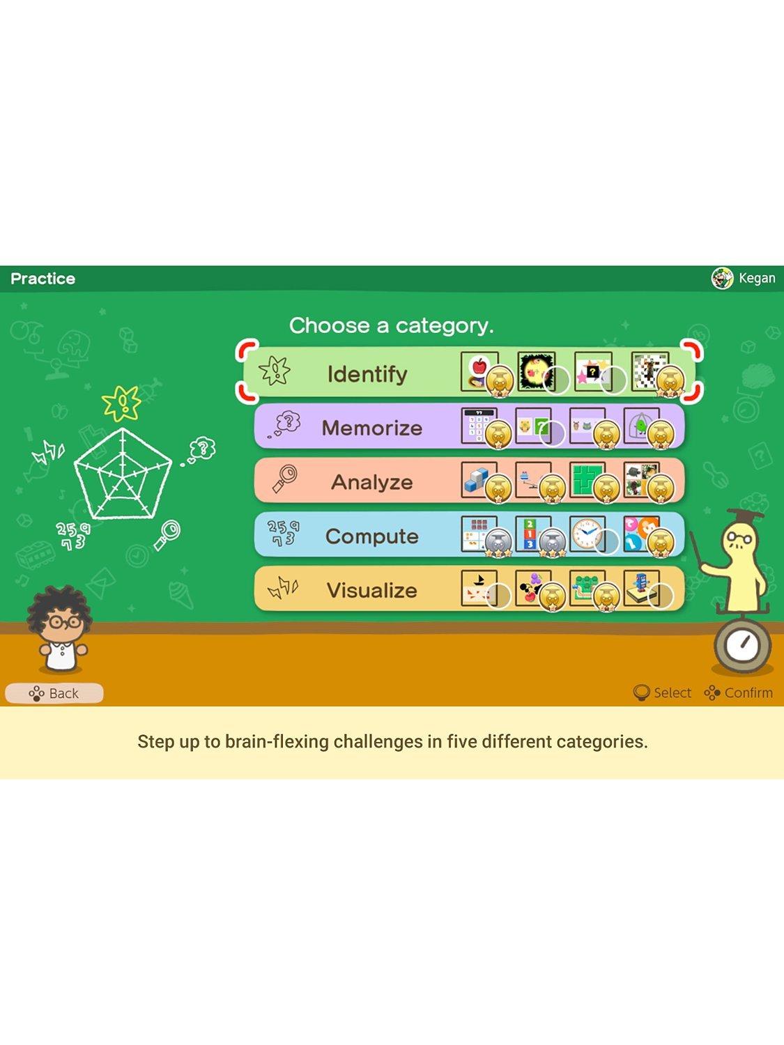 Step up to brain-flexing challenges in five different categories: Identify, Memorize, Analyze, Compute, and Visualize. Master each category to pump up your Big Brain Brawn!