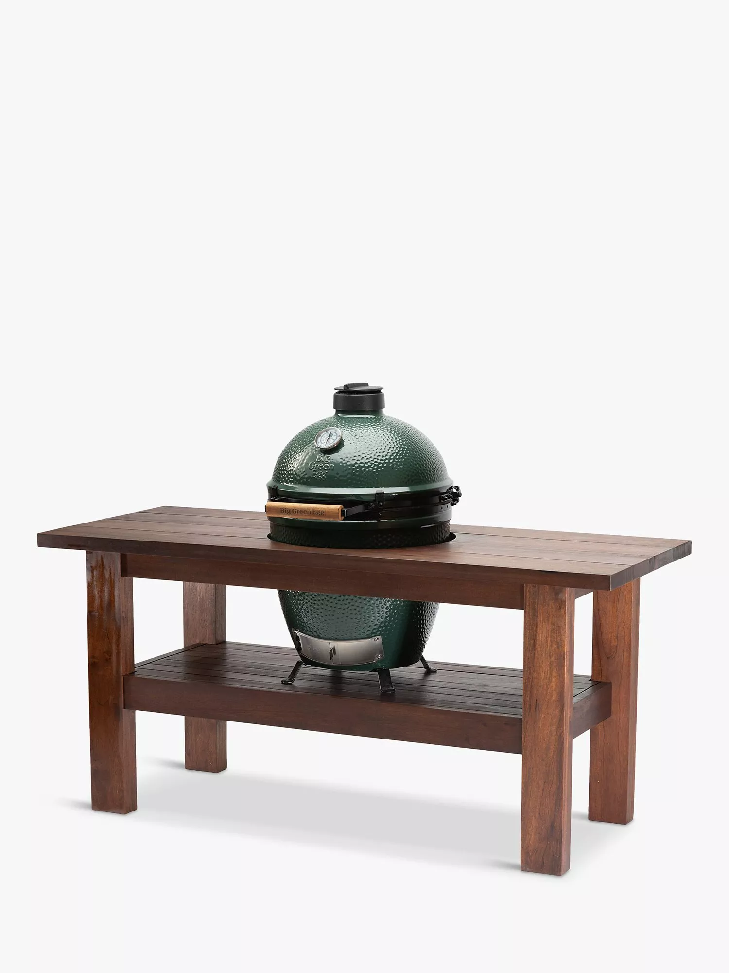 This Large Big Green Egg bundle includes a large mahogany wood table and table nest, plus a cover to protect the Egg and table when not in use. The Egg has a large gauge for keeping an eye on the cooking temperature. A large table in beautiful mahogany wood makes food preparation and cooking easier with space for preparation either side of the Egg.
