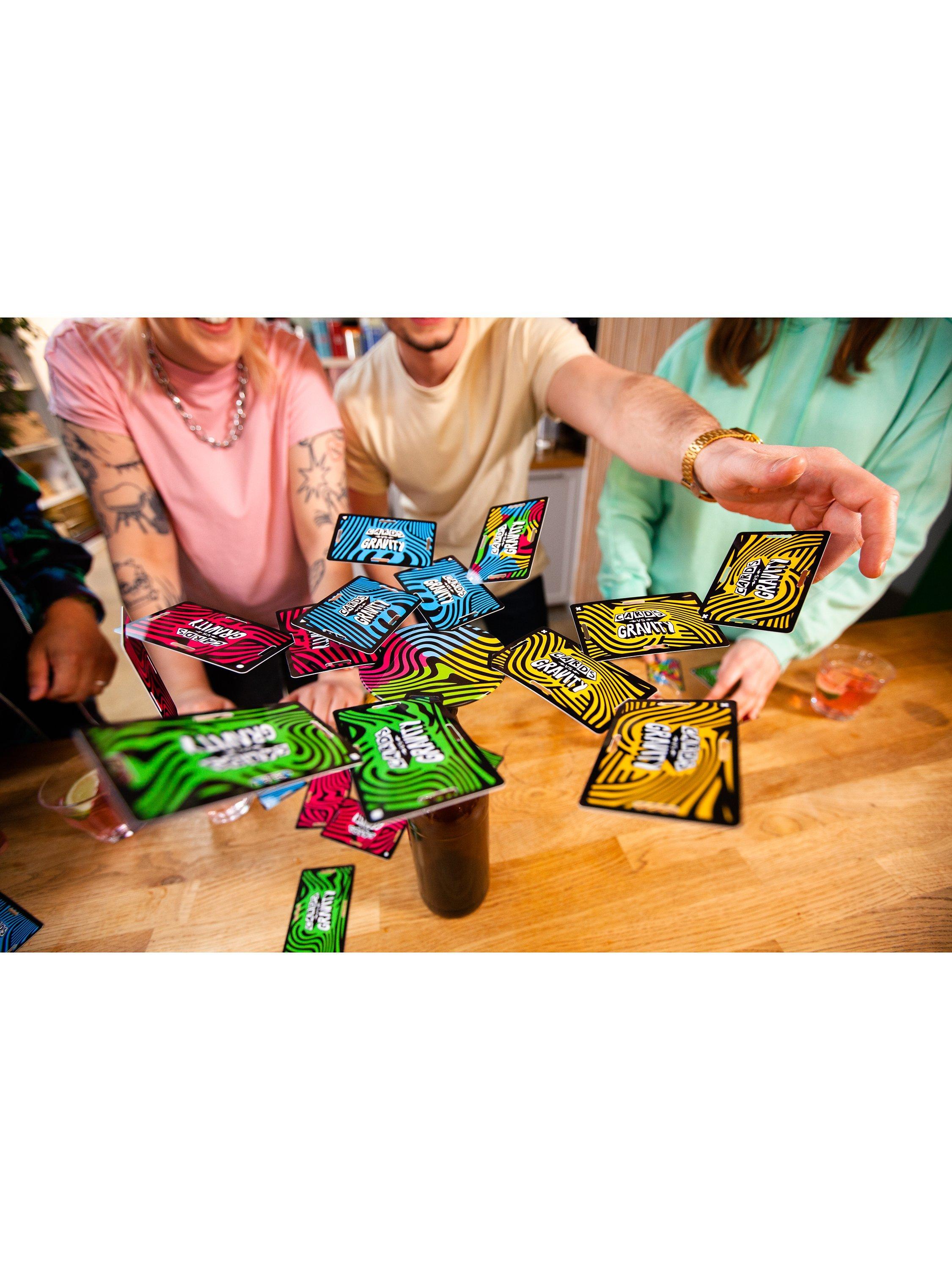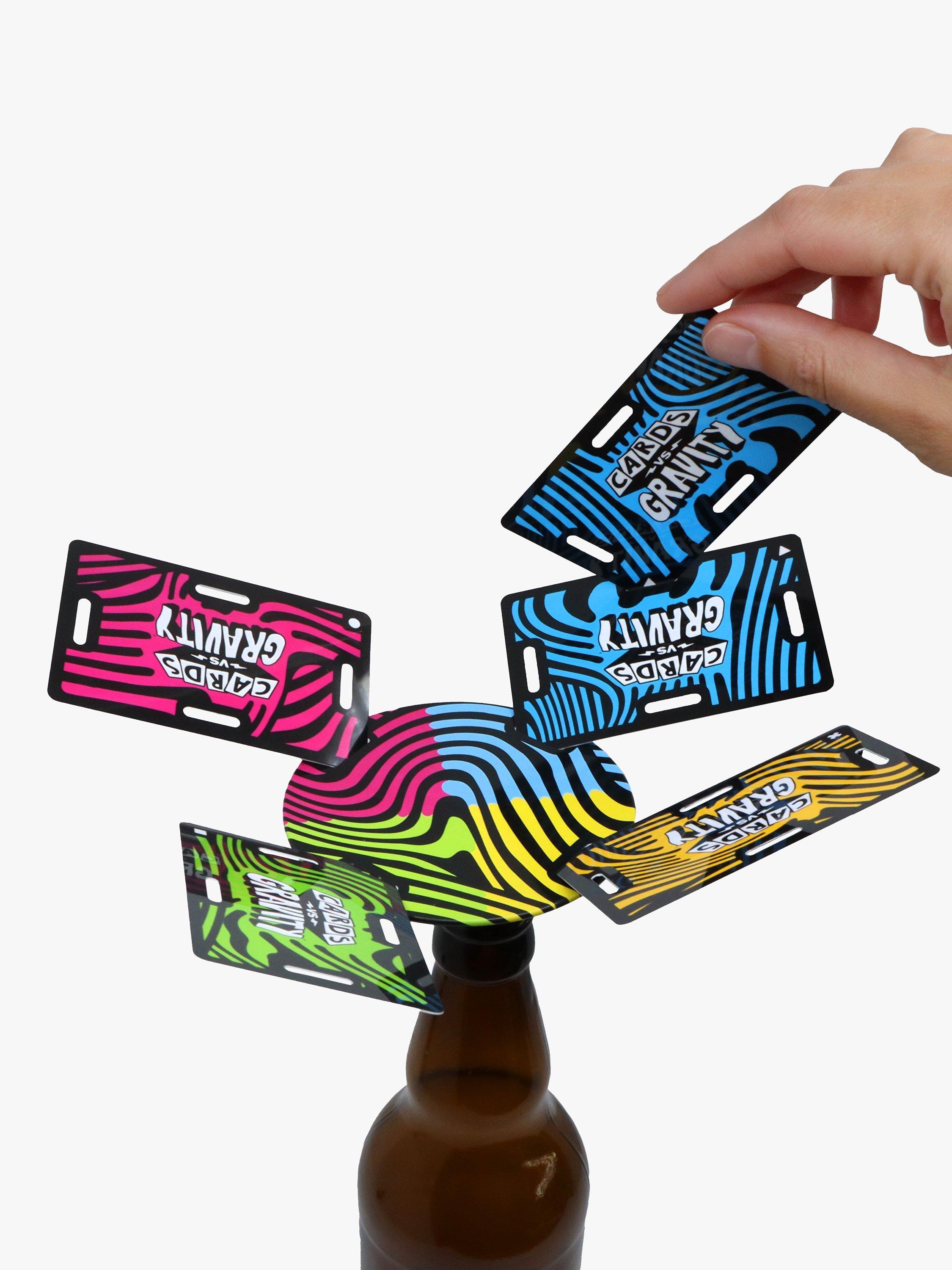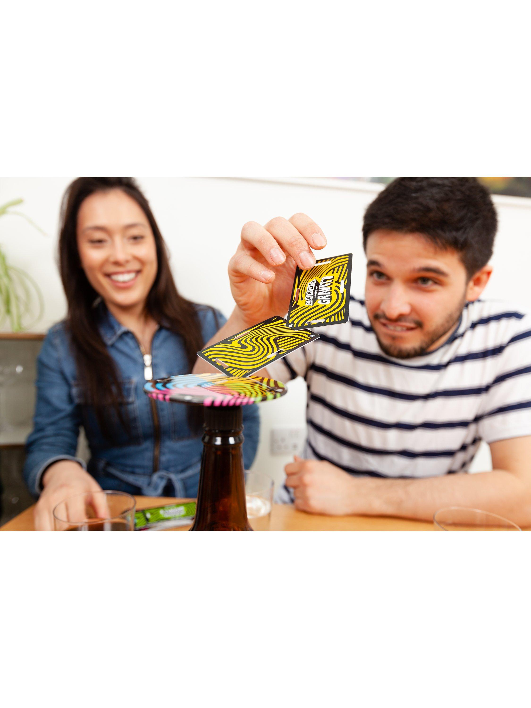 The gravity-defying, card-balancing game. Cards vs Gravity Pro is a tense building game like Jenga but instead of repositioning blocks you balance waterproof cards. Grab any bottle, push in the special stopper, attach the magnetic platform and start balancing your cards. You'll need tactics, luck and a steady hand to avoid being the player who knocks all the cards over. Comes with a handy carry case so you can take it anywhere.
