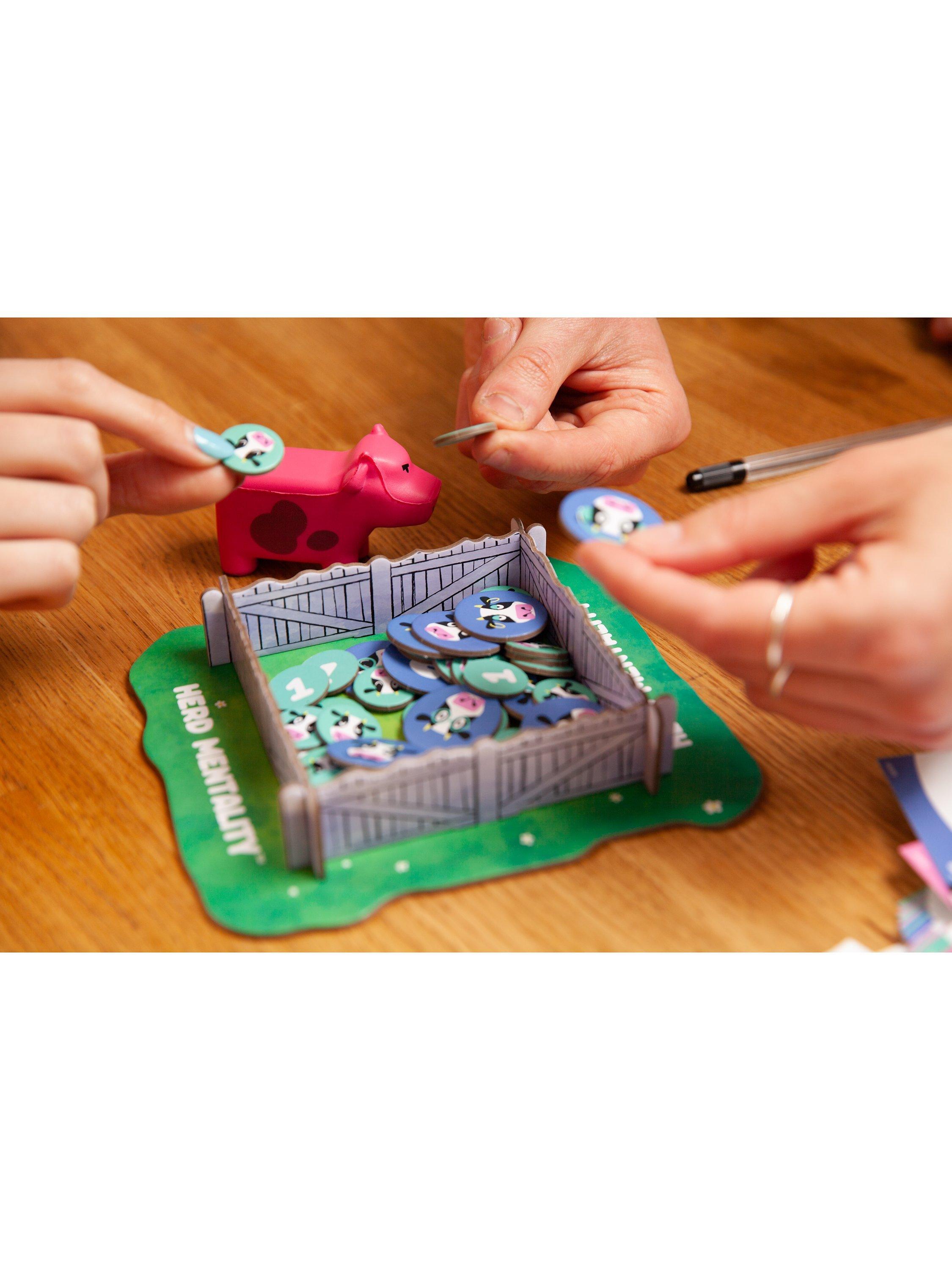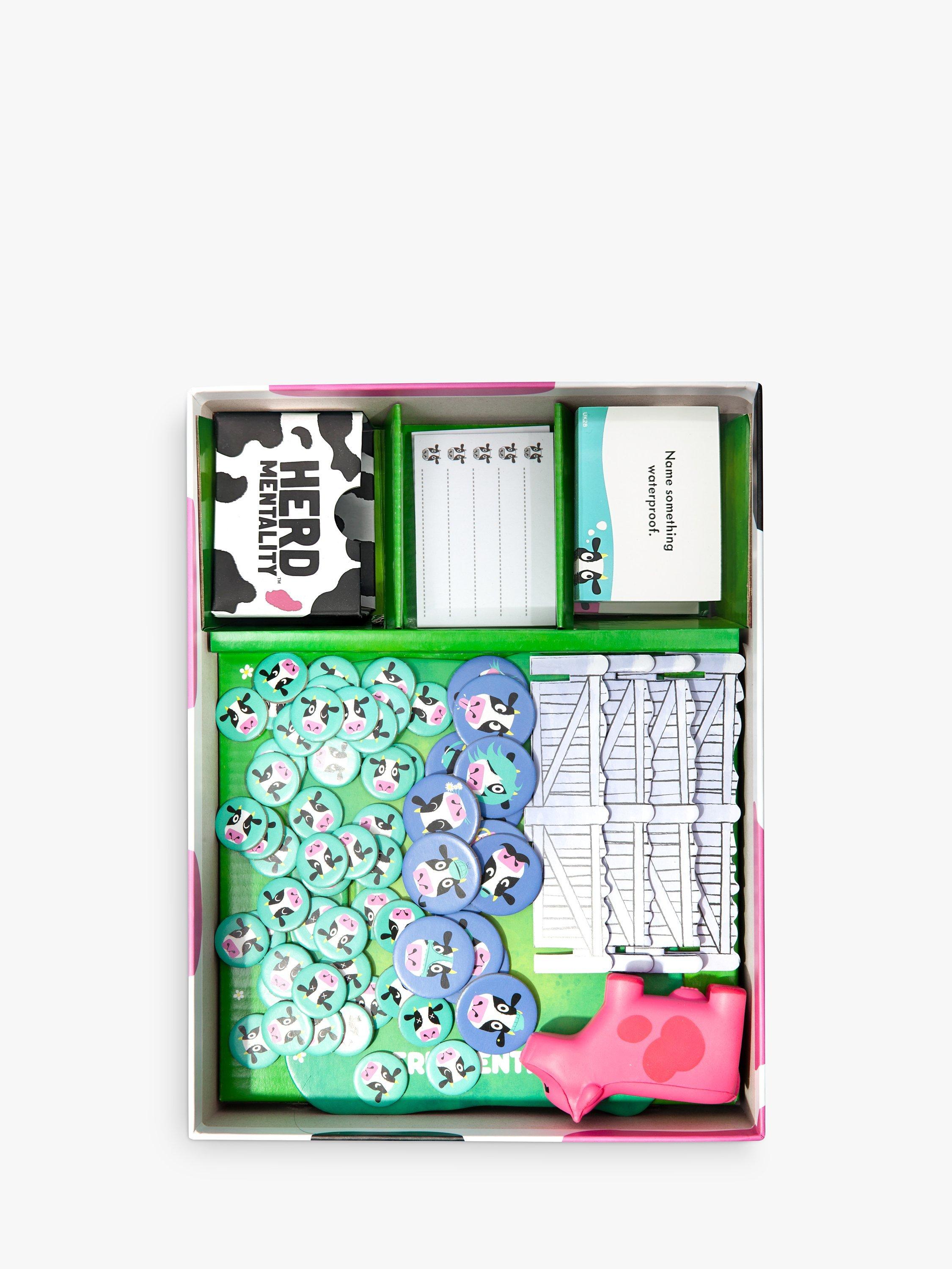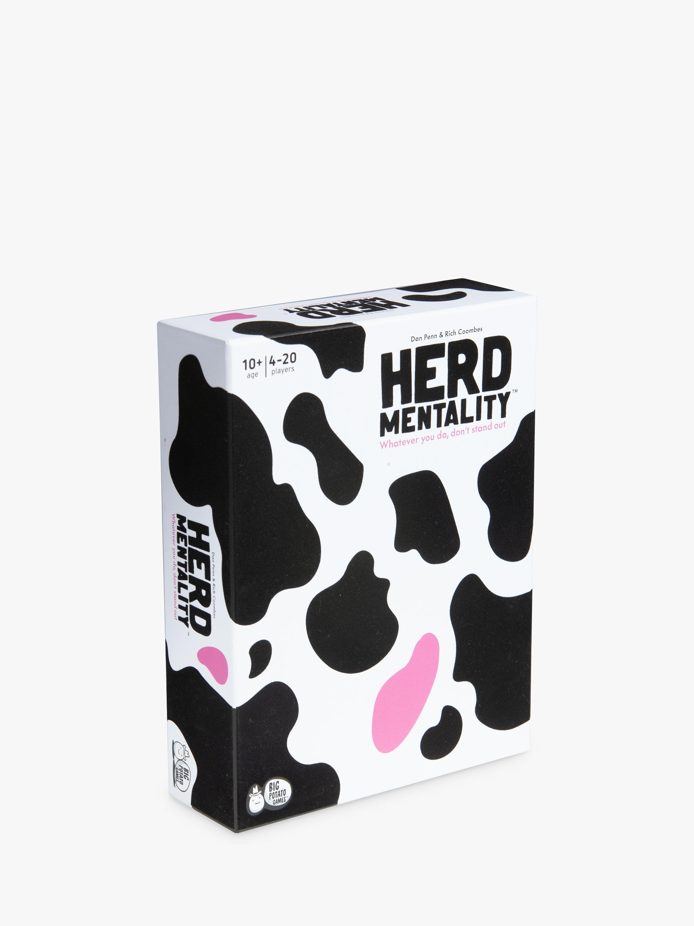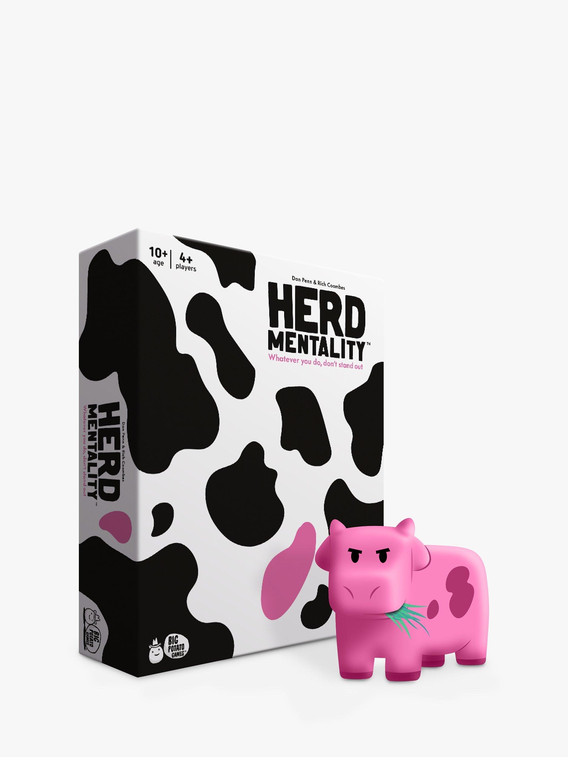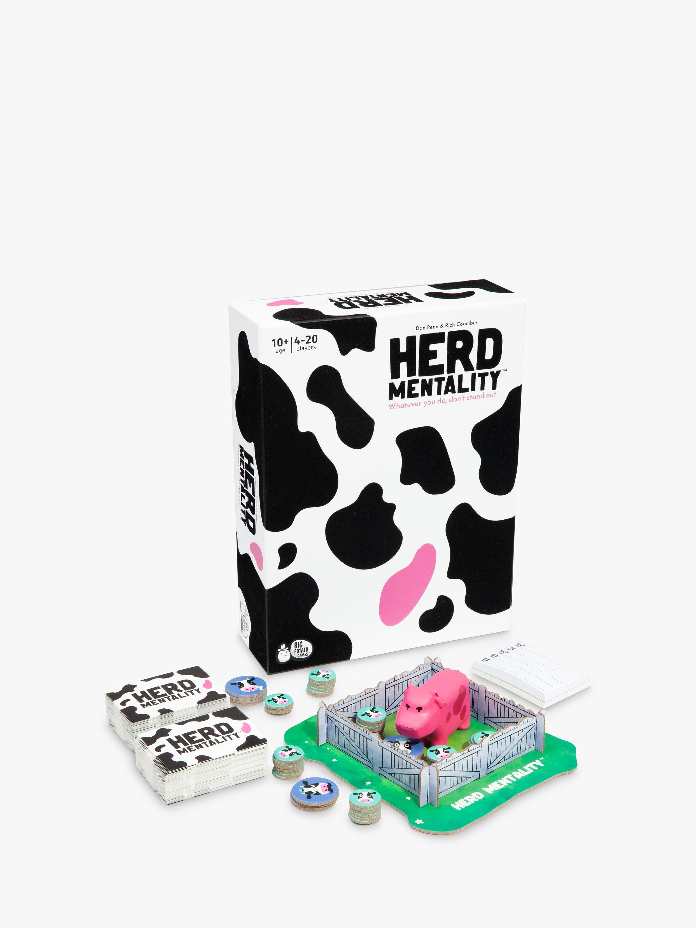 Herd Mentality is a party game with a simple mission: write down the same answer as everyone else. It starts with a random question, then everyone secretly writes down an answer. If your answer is in the majority, you win cows. But if your answer is the odd one out, you'll land the Pink Cow and your herd will be worthless...unless you can pass it on!