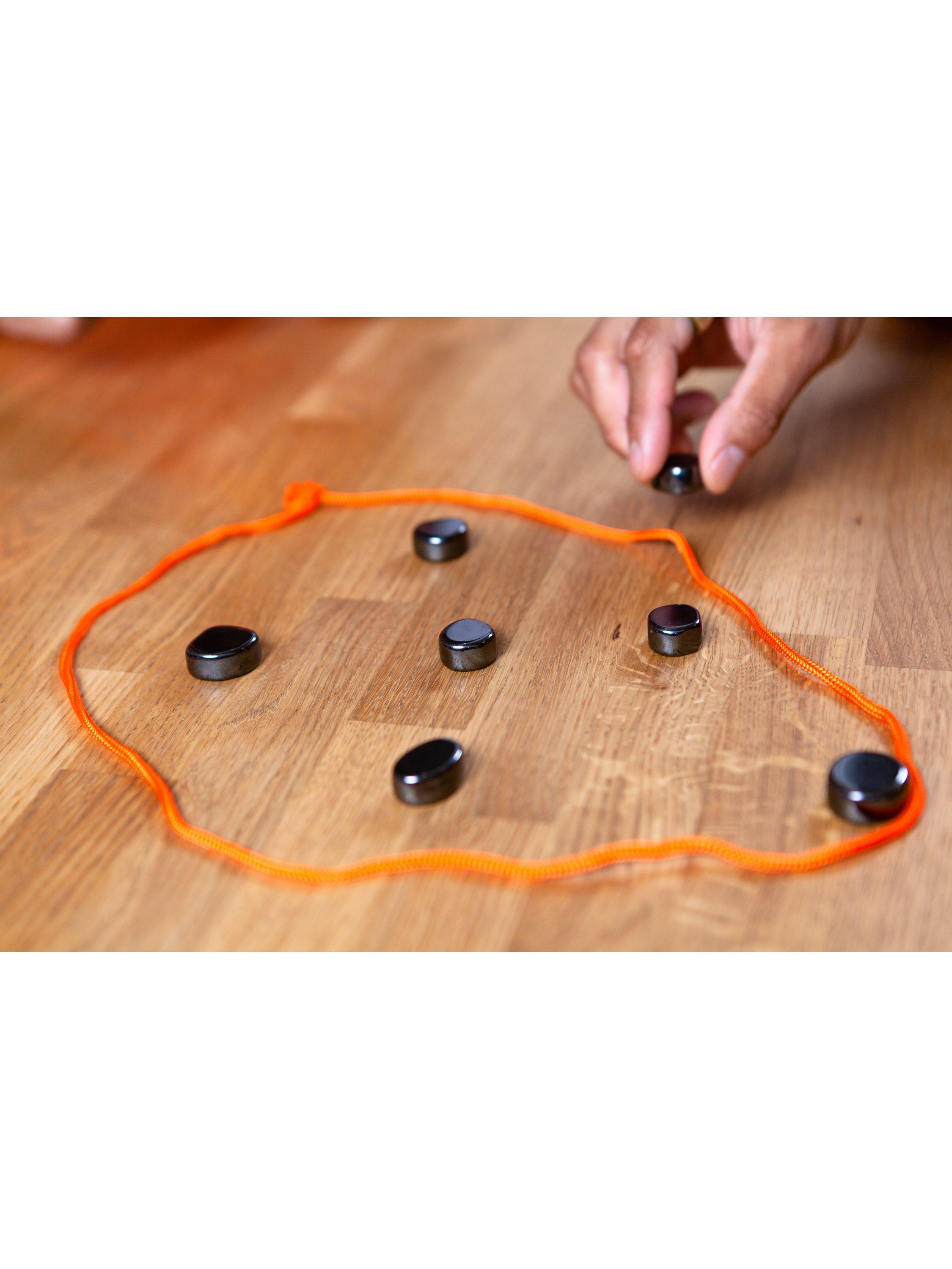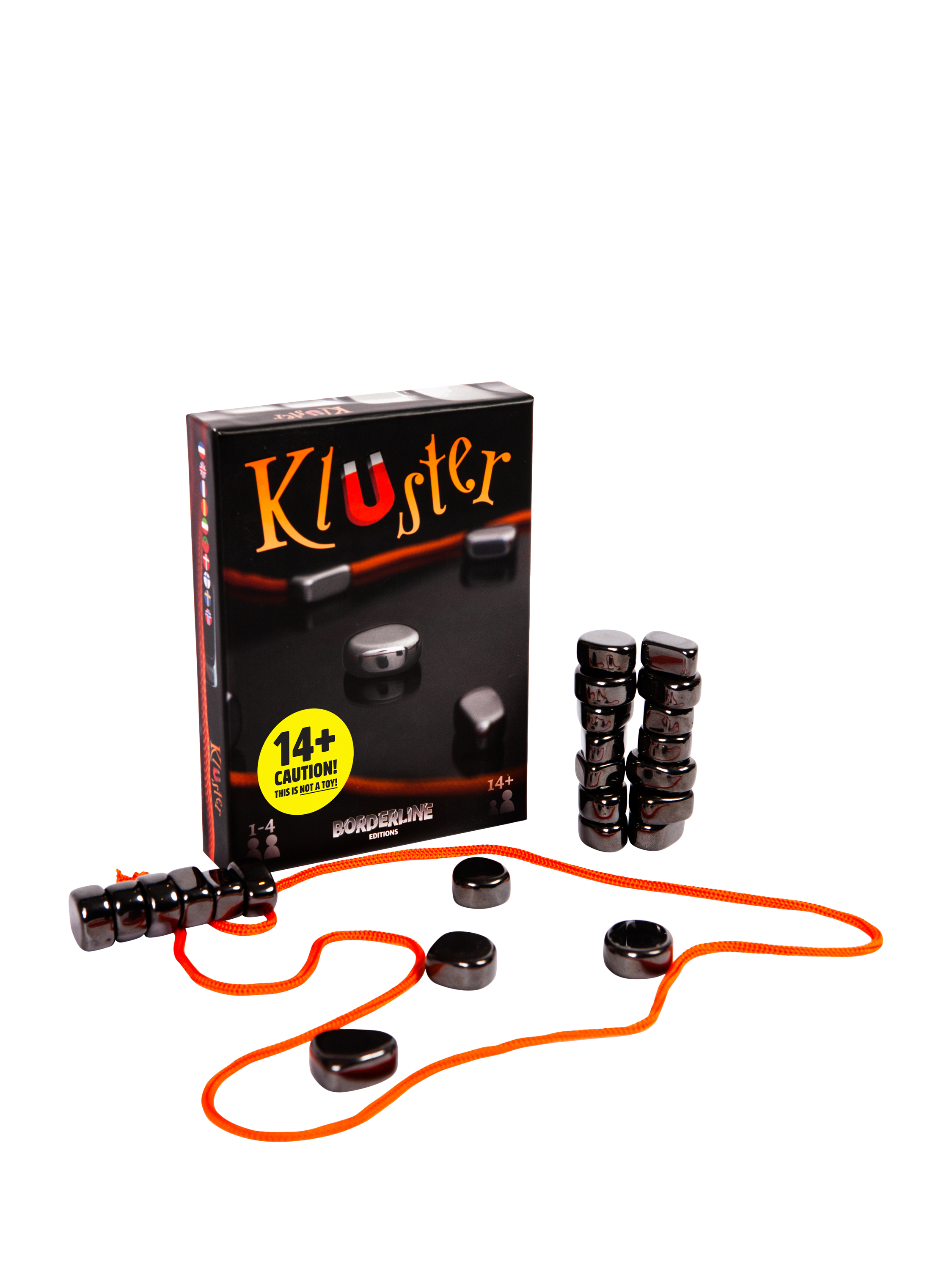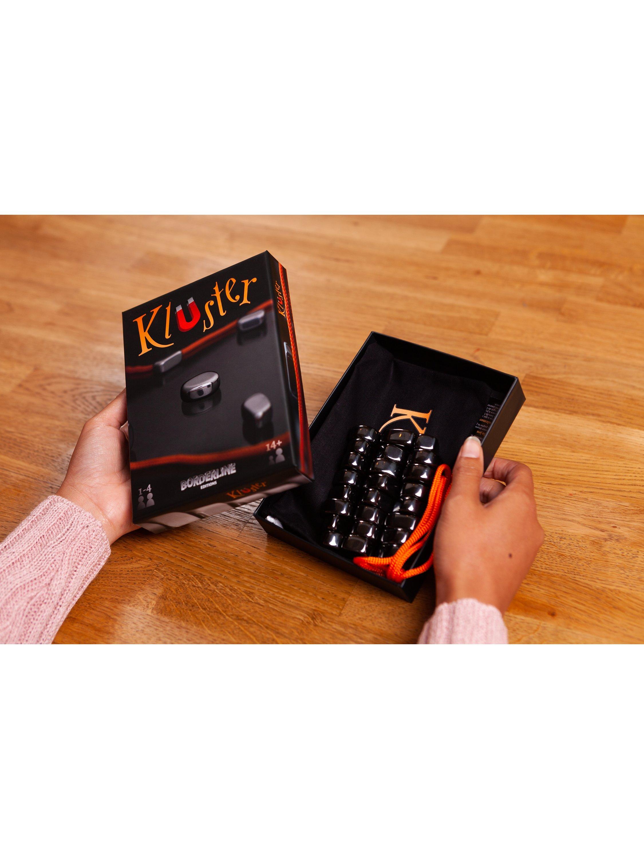 The magnetic mash-up- in Kluster, your mission is simple: be the first player to put down all your pieces inside the circle. Only thing to remember is that none of the pieces can touch each other, and they're all magnetic. Drop one in without setting off a chain reaction and you'll be one step closer to victory. However, if you accidentally clash with another piece, they'll all go back into your collection - clearing the way for the next player.