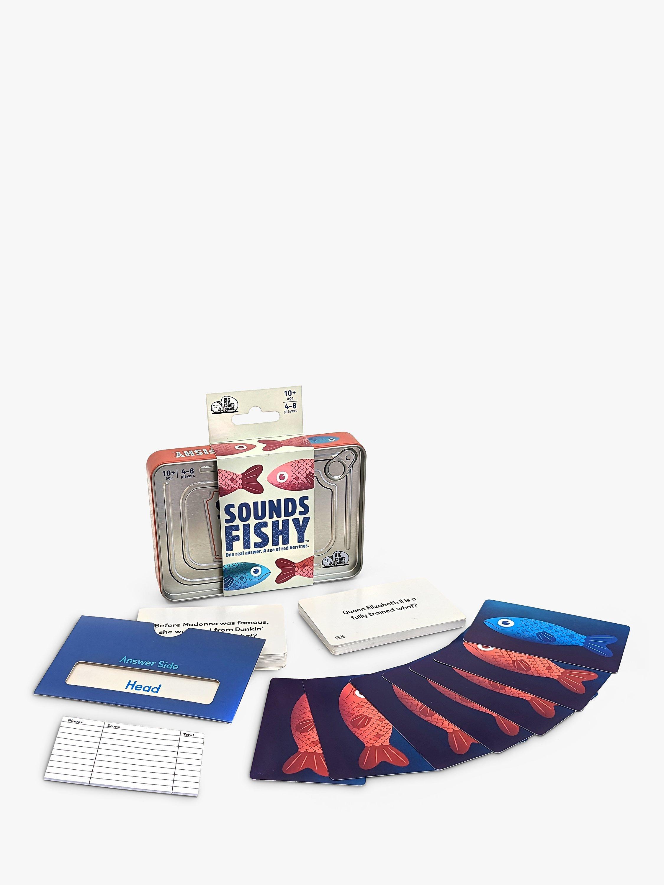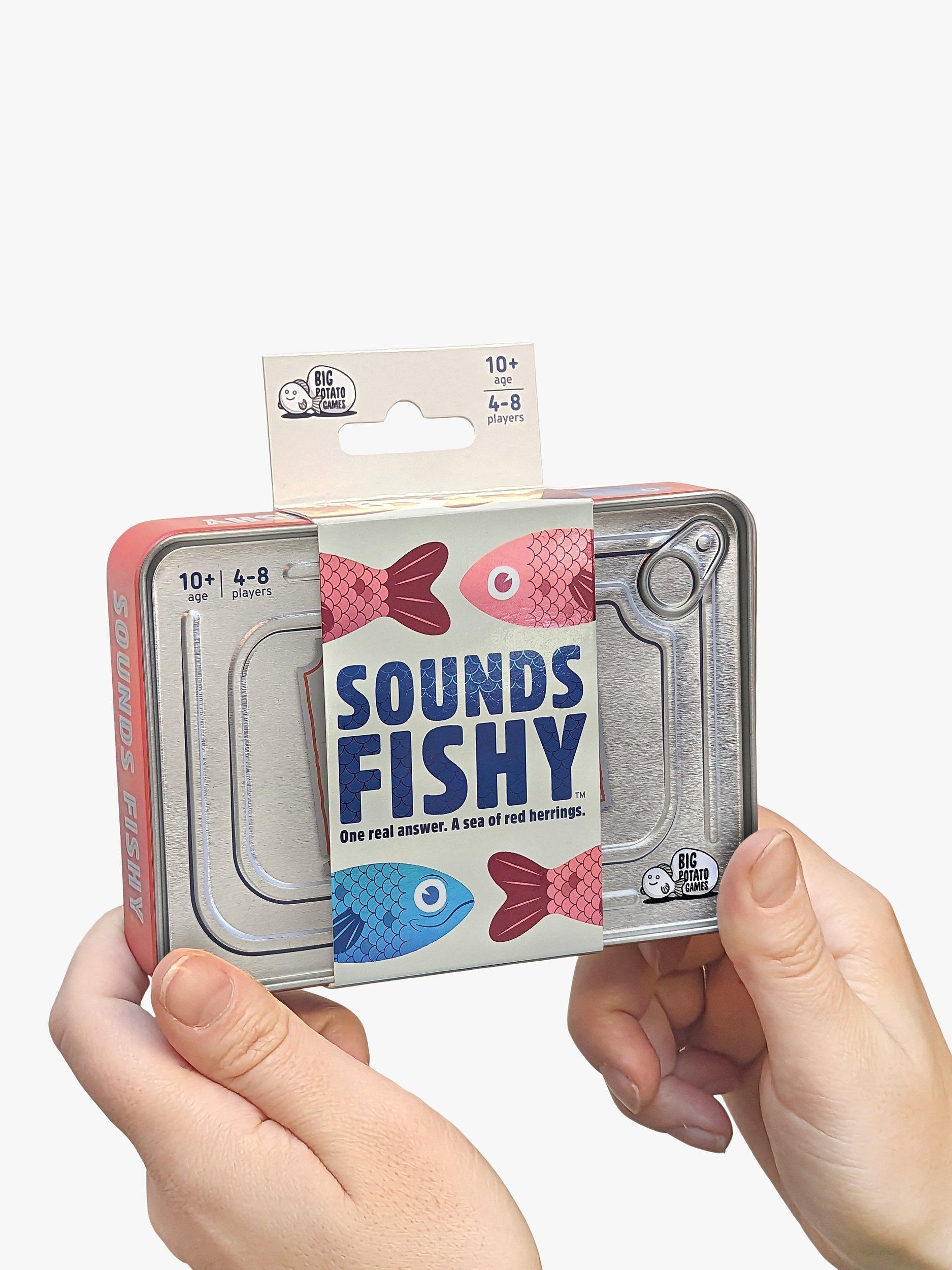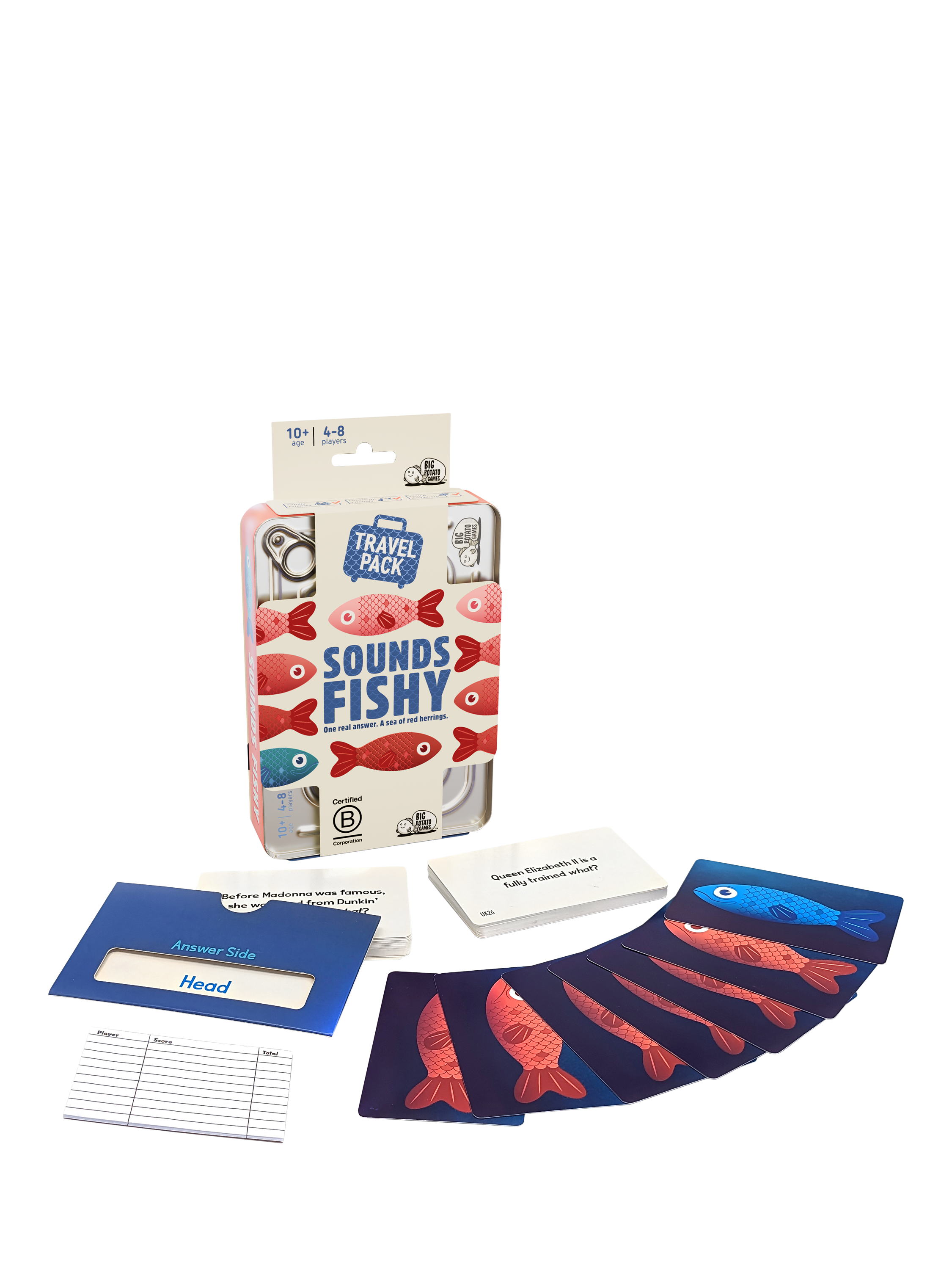Sounds Fishy is a party game with some strange questions and some pretty fishy answers. Think you can guess which animal was elected mayor of Alaska? Well, in this game, you don't need to know the right answer. You just need to catch the fake answers invented by the other players - while trying to avoid the real one. This minnow version of Sounds Fishy means you can set sail with 50 questions and everything you need to play, all packed into a specially designed travel tin.