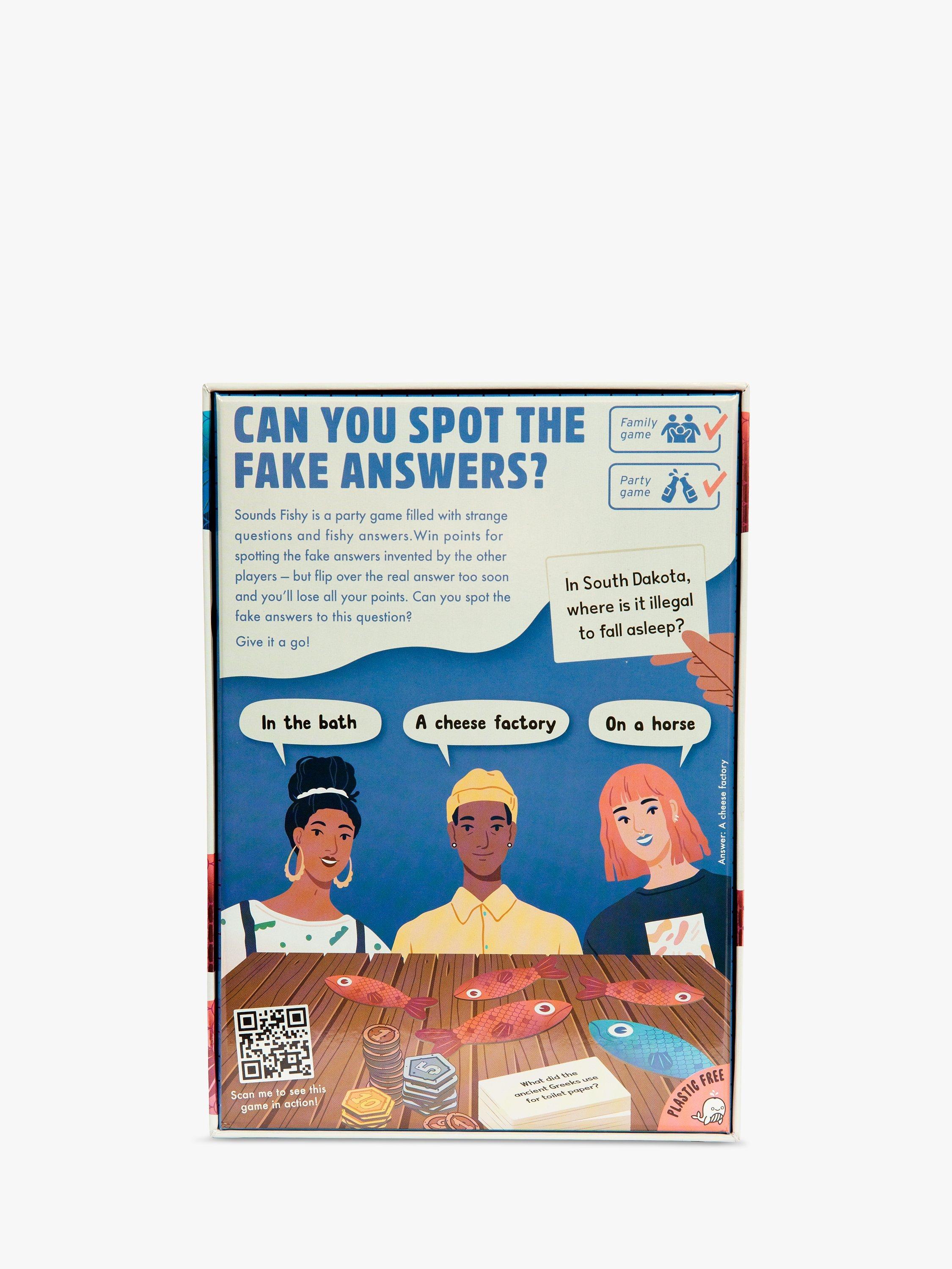 One right answer. A sea of red herrings. Sounds Fishy is a party game with some strange questions and some pretty fishy answers. Think you can guess which animal was elected mayor of Alaska? Well, in this game, you don't need to know the right answer. You just need to catch the fake answers invented by the other players - while trying to avoid the real one.