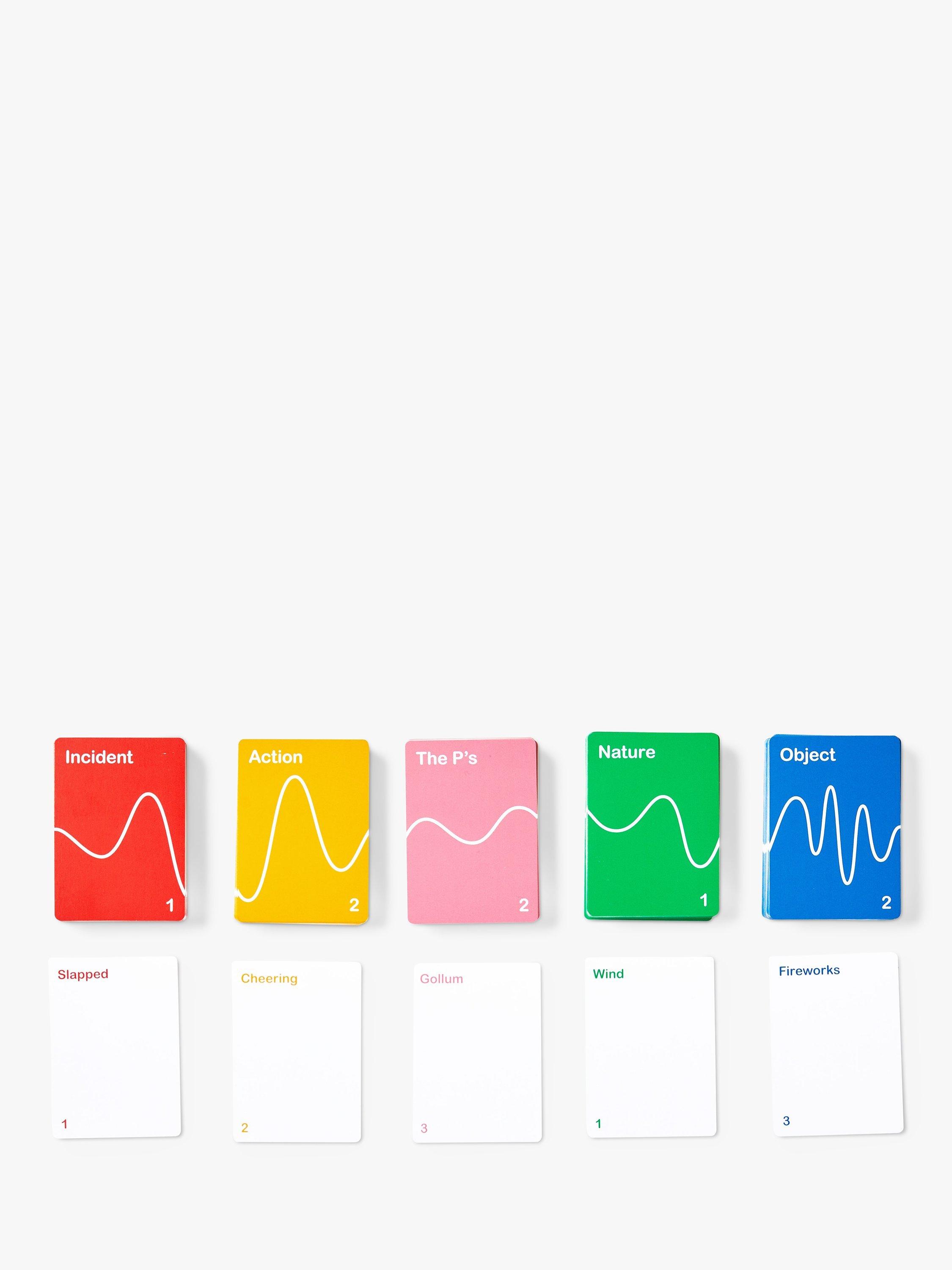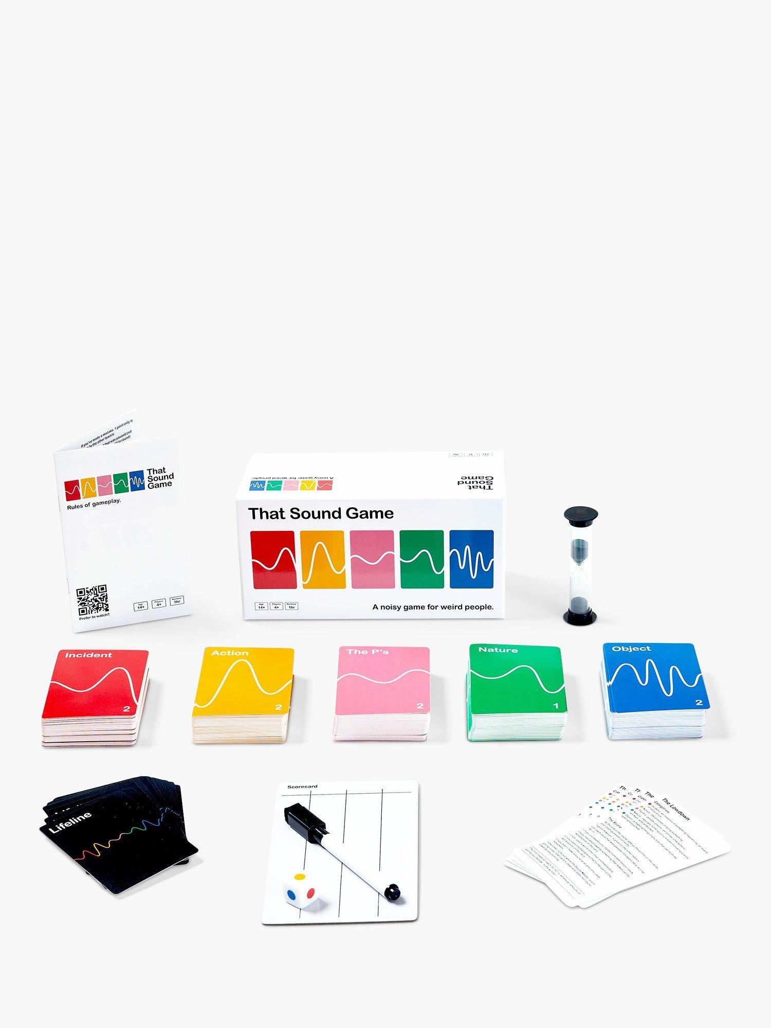 A noisy game for weird people, That Sound Game is a fast paced, interactive and very noisy party game. The goal is to get your team to guess as many answers on the category cards as they can in a minute. Use any combination of sounds and movements, but your hands must be behind your back. You also get Lifelines. Use them strategically to help you win.