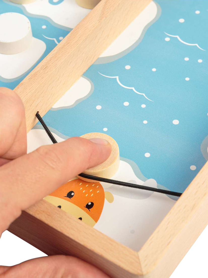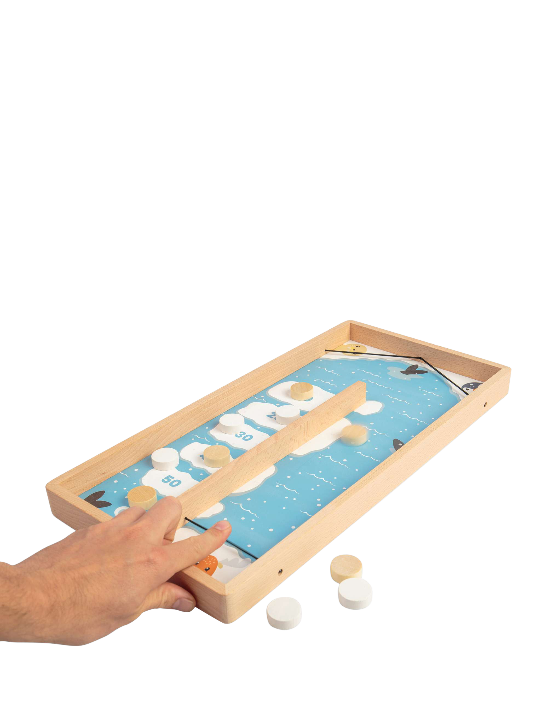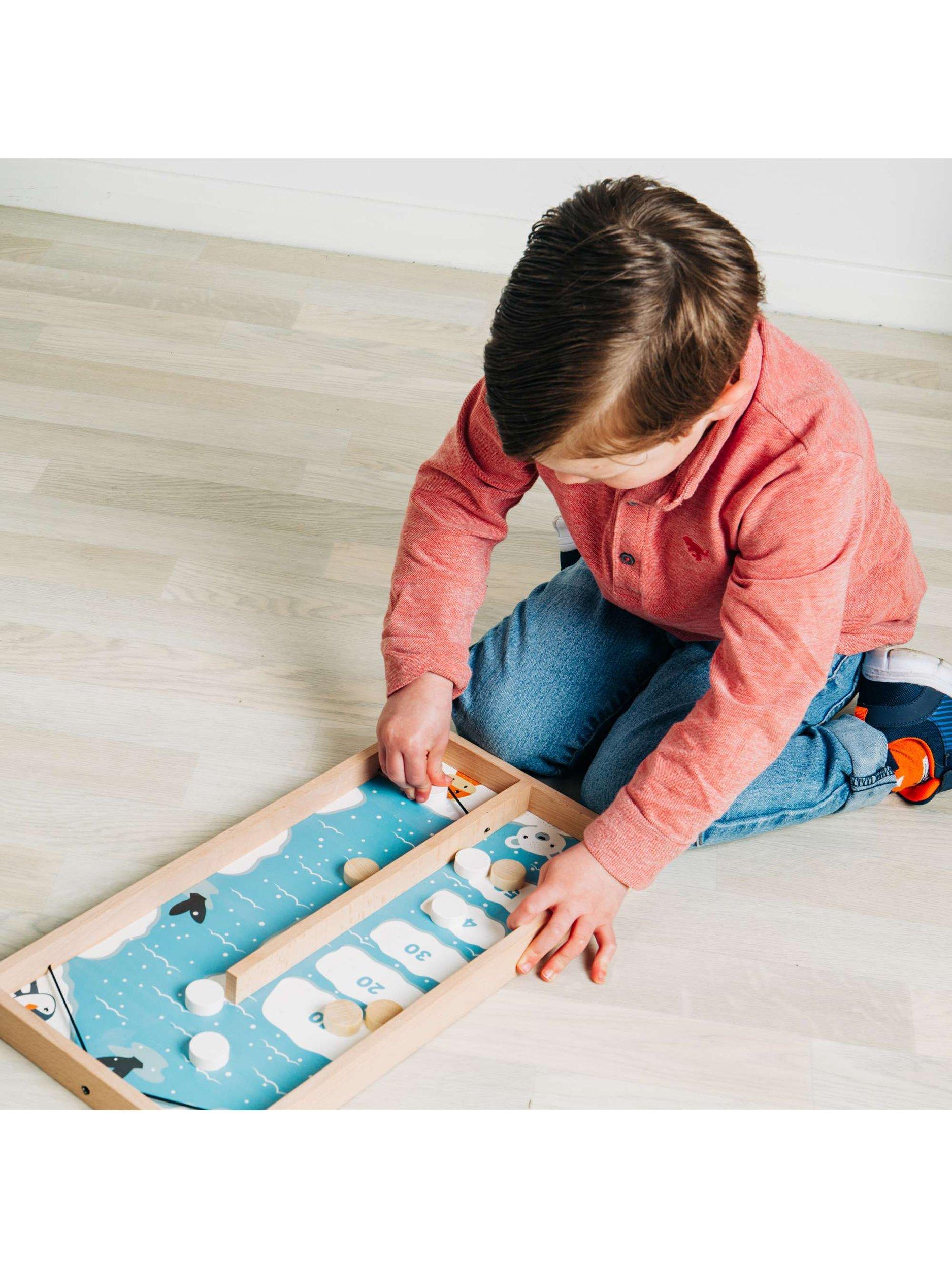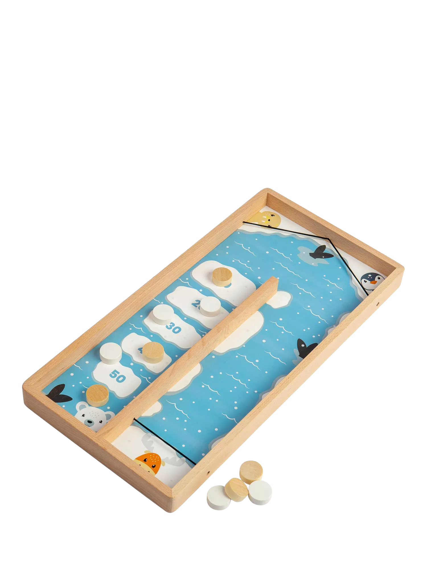The Ice Puck Game is designed to captivate youngsters with its adorable Arctic animal illustrations. It comes with 10 counters and a wooden board featuring five scoring markers in multiples of 10. Divide up the counters and go head-to-head using the elasticated string to ping the counters to the other side of the board. The winner is the player to receive the highest score at the end of the game.