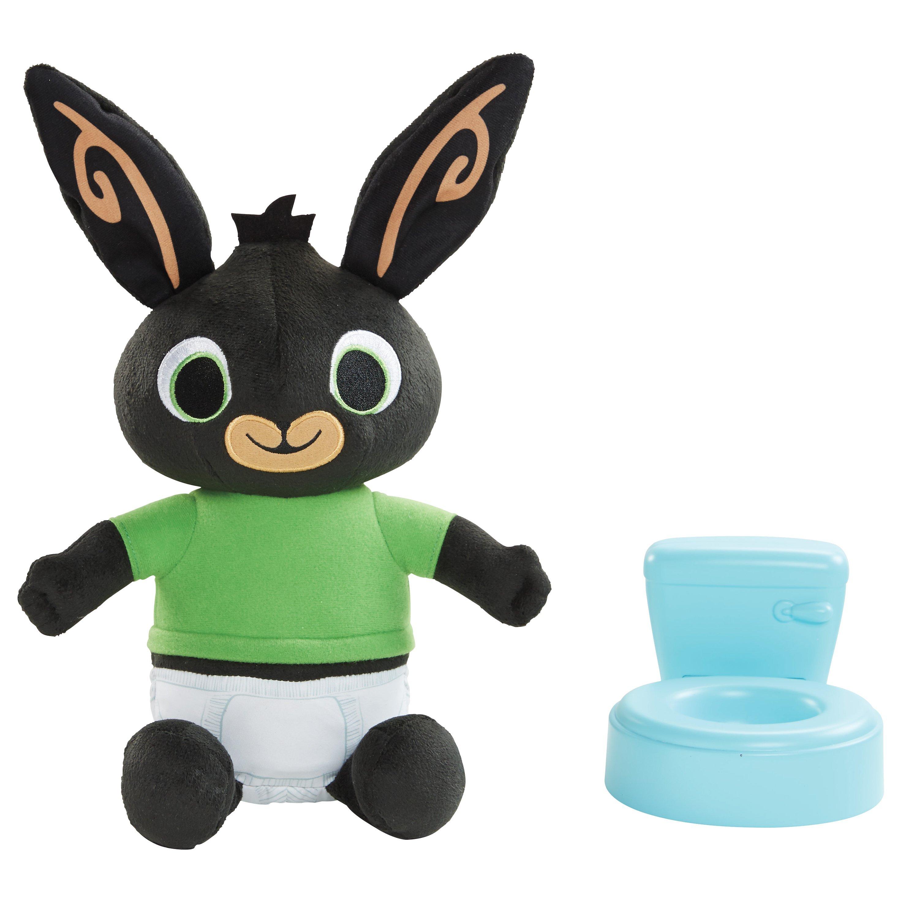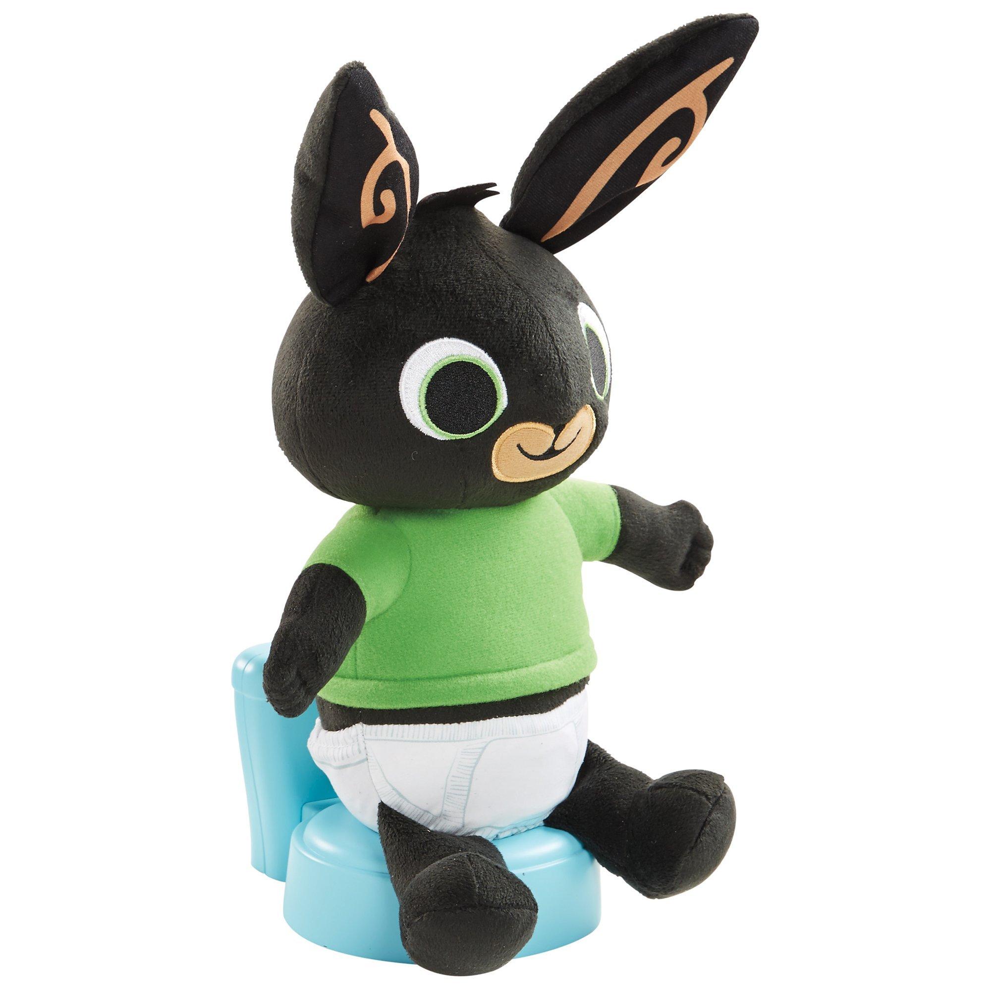 Children will love playing games with this soft and cuddly Bing... but wait, it's time to stop the game for the toilet train! Toilet Train Bing lets you know when he needs to go to the toilet. Sit Bing on the toilet and hear a flush when he's finished! But if Bing doesn't make it in time, uh-oh