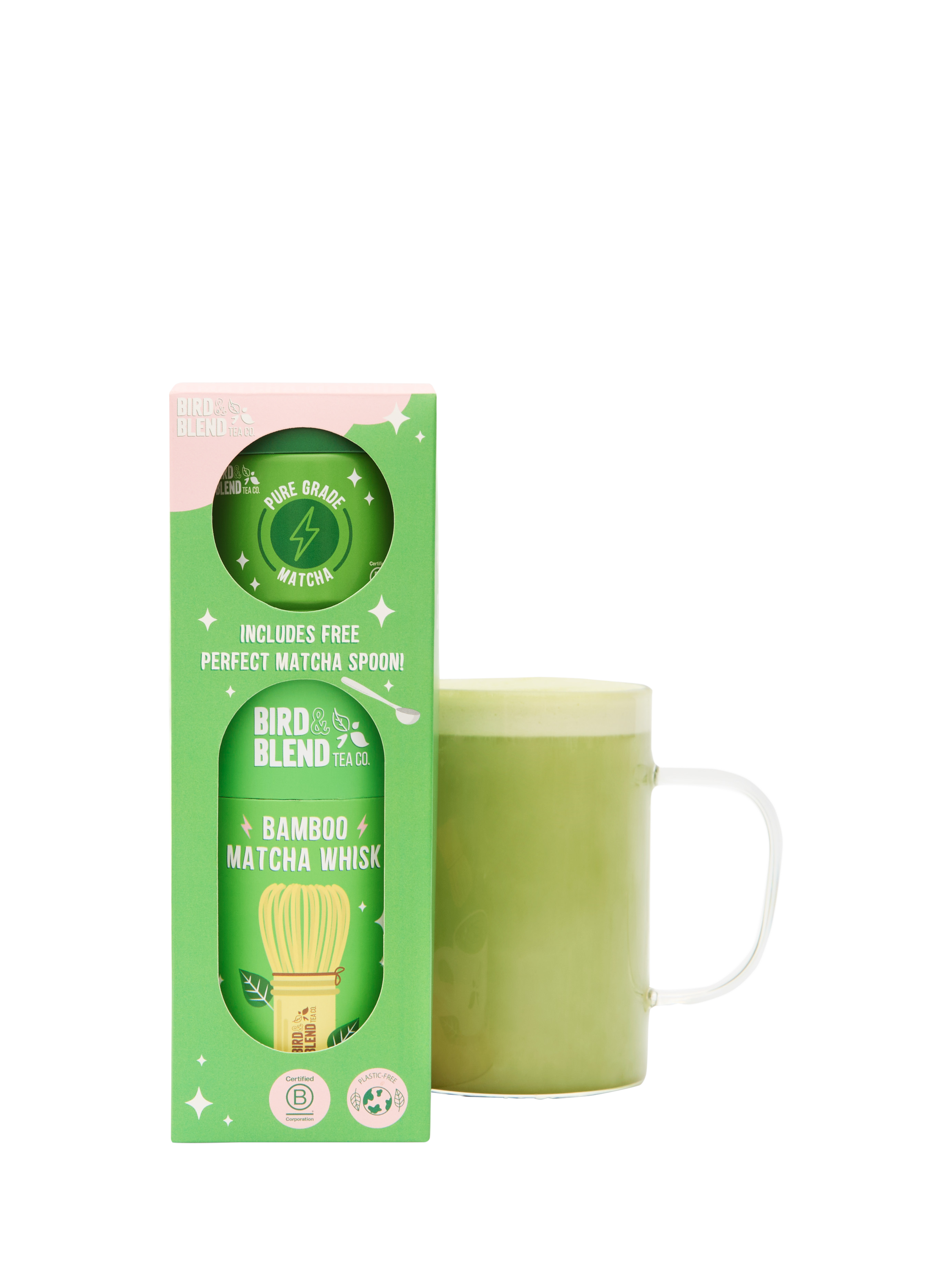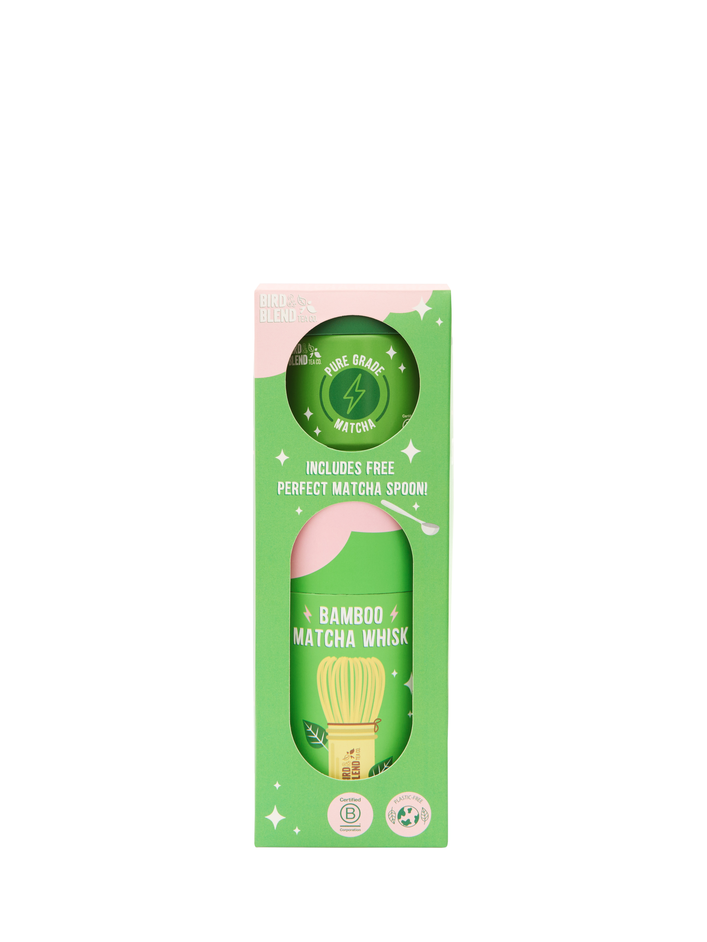 Contents: Perfect Matcha Spoon, Bamboo Matcha Whisk and Matcha Powdwer Tin, 30g. Everything you need to take your first steps into easy matcha making at home.