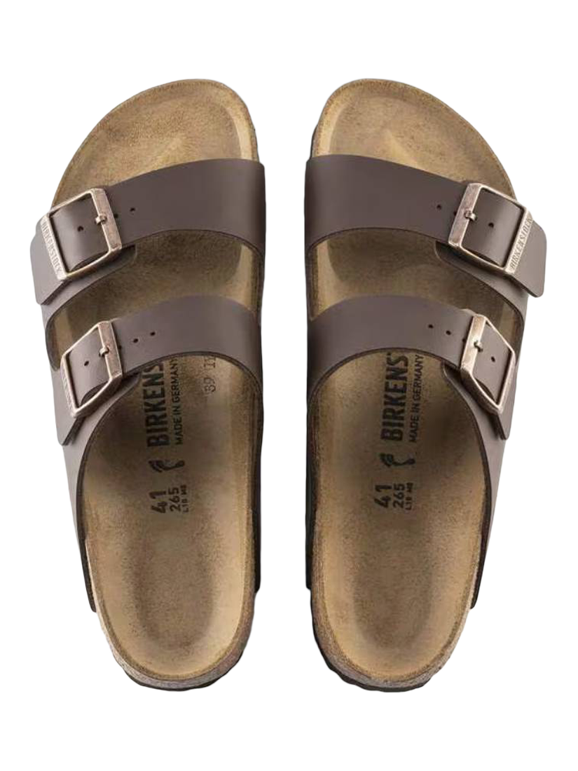 Birkenstock are renowned for long-lasting comfort footwear and these Arizona sandals are designed in their classic two-strap style. With adjustable stone-coloured straps, a shaped cork latex footbed and shock absorbing EVA sole, they are the perfect choice to see your feet happily through summer.