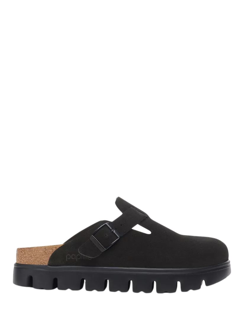 The Birkenstock Boston clog is a veritable classic that can easily be worn all year round. Here, Papillio presents the clog with a stylish platform sole with extra deep tread lines. The bevel results in maximum walking comfort. The upper is made from especially soft suede which hugs the foot like a second skin.