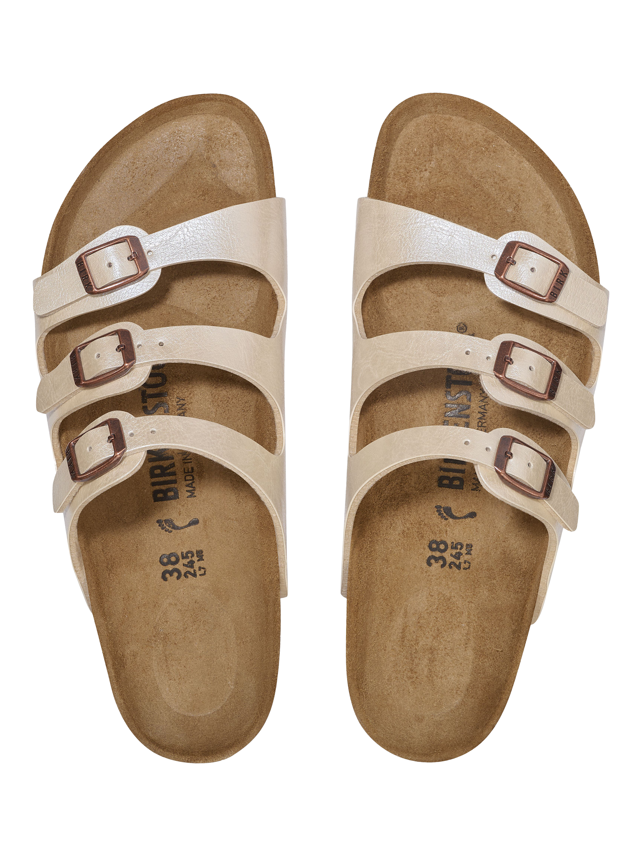The Birkenstock Florida is a veritable classic that delights the world of fashion with its design. Here, we see the sandal with a silky sheen finish. The upper is made from the skin-friendly, hard-wearing synthetic material Birko-Flor®.