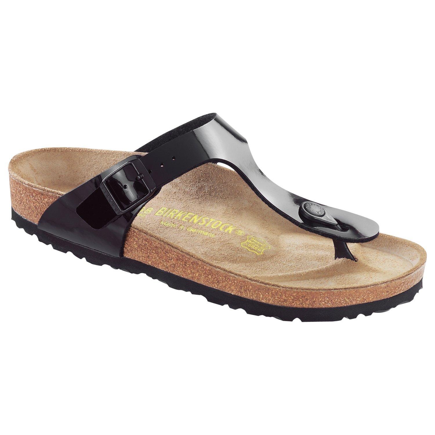 Thong style flip flops from Birkenstock with Birko-Flor uppers designed for casual or formal attire.