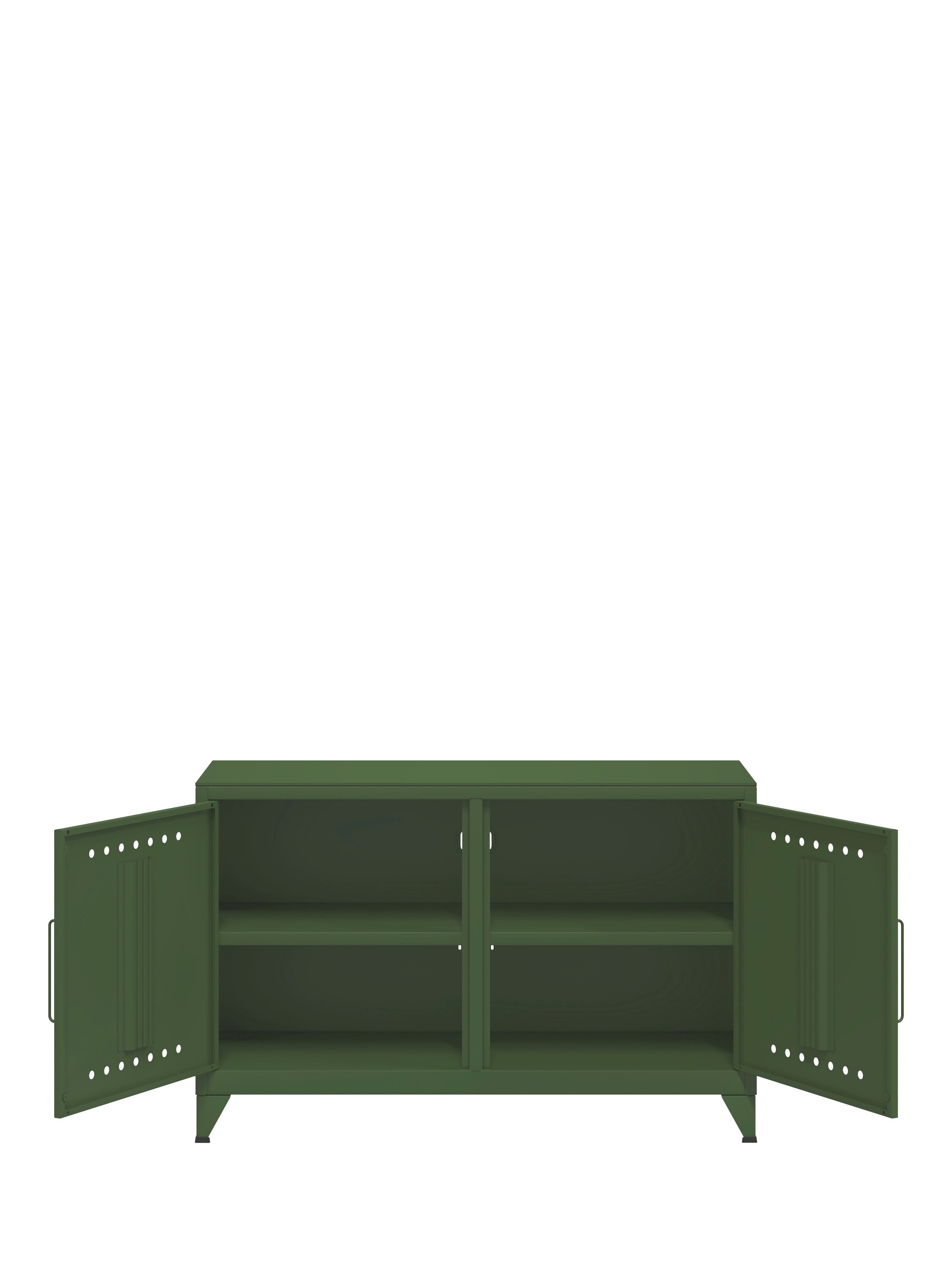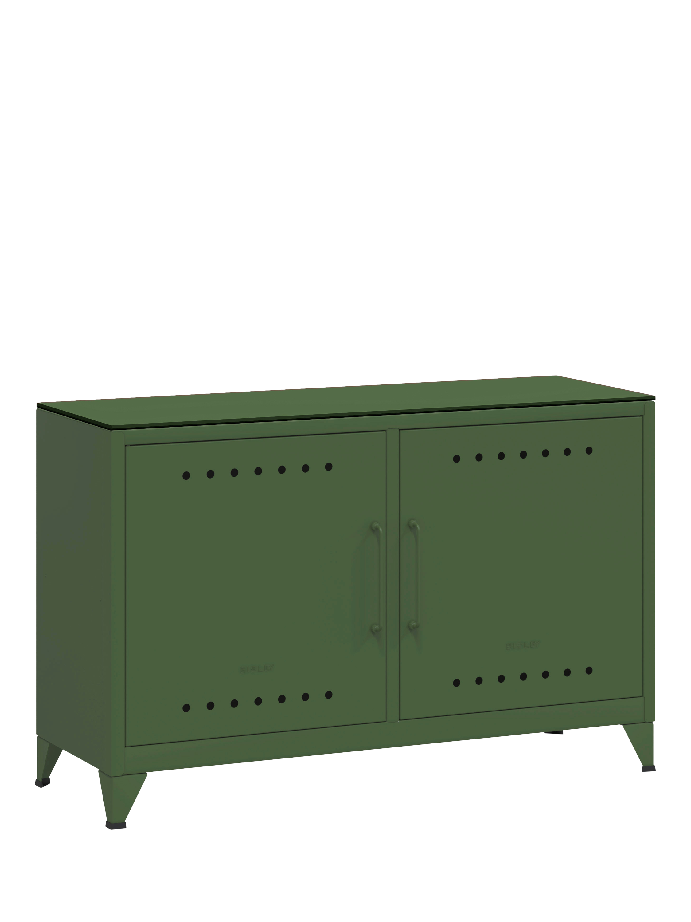 With a fixed shelf and perforated doors, the colourful, clean aesthetic suits most modern spaces.