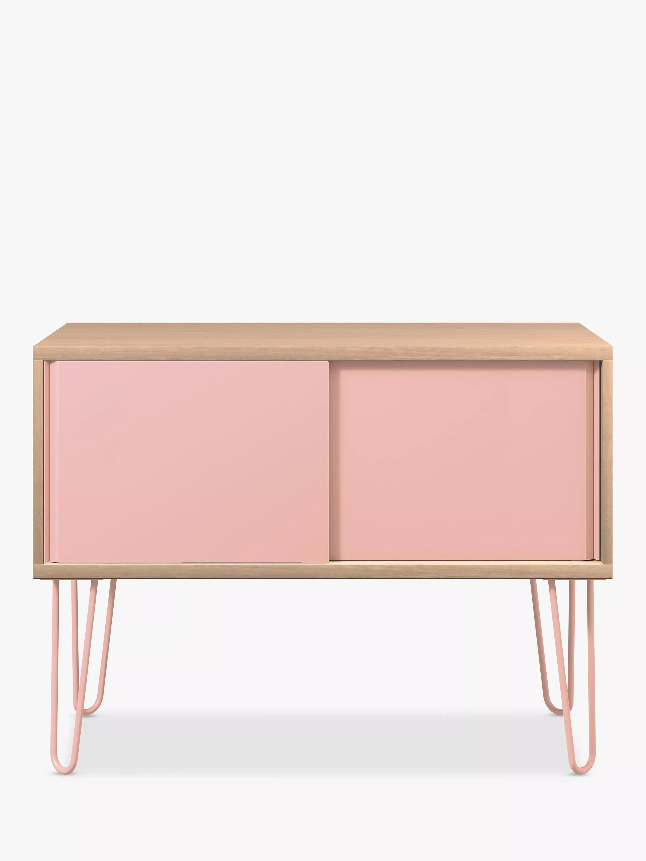Complement your living space or workplace with this modern sliding door sideboard from Bisley. Crafted from laminated Melamine Faced Chipboard, the sideboard fits seamlessly into any contemporary living area or working environment, whether at home or in the office. Made in the UK, the furniture sits on sturdy steel hairpin legs and inside there's an adjustable shelf.