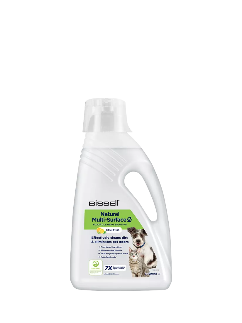 BISSELL® Natural Multi-Surface-Pet Floor Cleaning solution 2L is one of our best cleaning formulas for hard surfaces, designed for cleaning all sealed hard floors and area rugs (CrossWave Only). Removes everyday dirt and grime and leaves floors clean and refreshed. Plus, its composition contains no heavy metals, phosphates, or dyes - leaving behind no dulling or harmful residue, all while working hard, to restore your floor's natural shine.