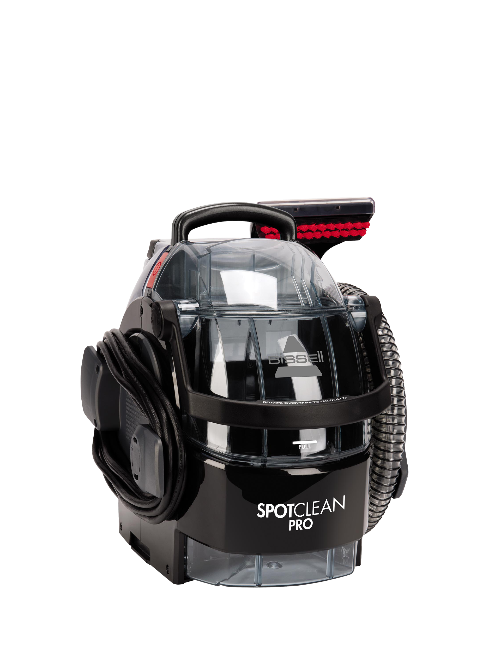 Spots and stains disappear in seconds with the BISSELL® SpotClean™ Pro, wherever they are. The lightweight, portable design allows you to remove stains from stairs and upholstery as well as carpets and rugs. The SpotClean™ Pro comes with an extra-long power cord plus a selection of brushes to remove 'just happened' stains as well as older, ingrained marks wherever they may occur.