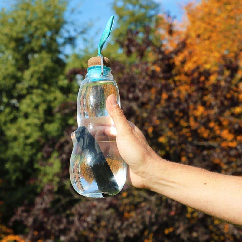 The Eau Good bottle is made from Tritan with a natural cork stopper and a silicone cap to ensure a leak-proof seal. The iconic shape is also easy to hold and to drink fro. Includes one charcoal water filter that lasts for up to six months of daily use.