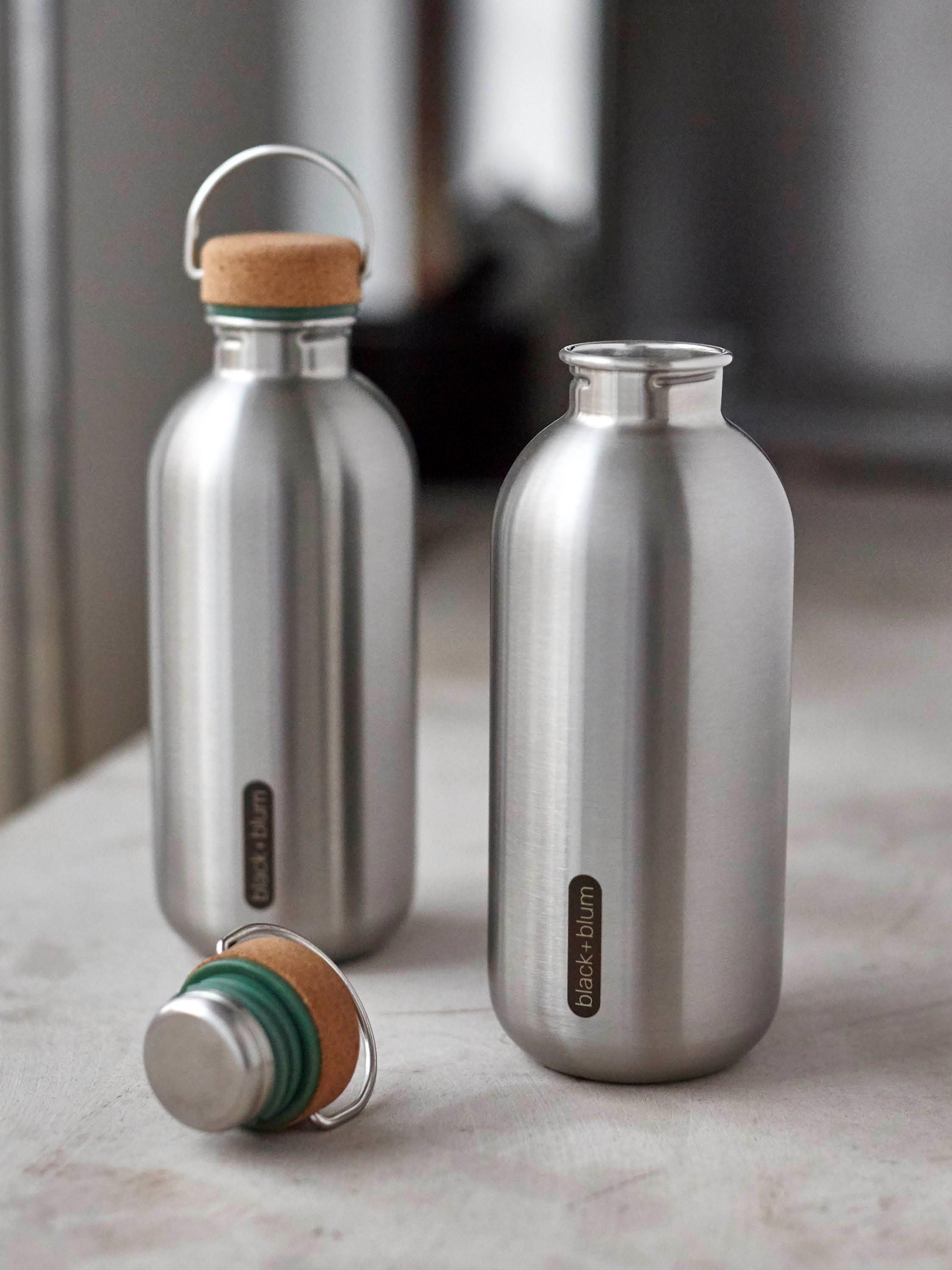 Borosilicate glass water bottle with a protective non-slip sleeve, convenient carry loop and full glass and stainless steel contact with water. A 100% leak-proof design with a thread on the inside for smooth drinking and paracord carry loop. BPA-free and made with a high-quality stainless steel lid.