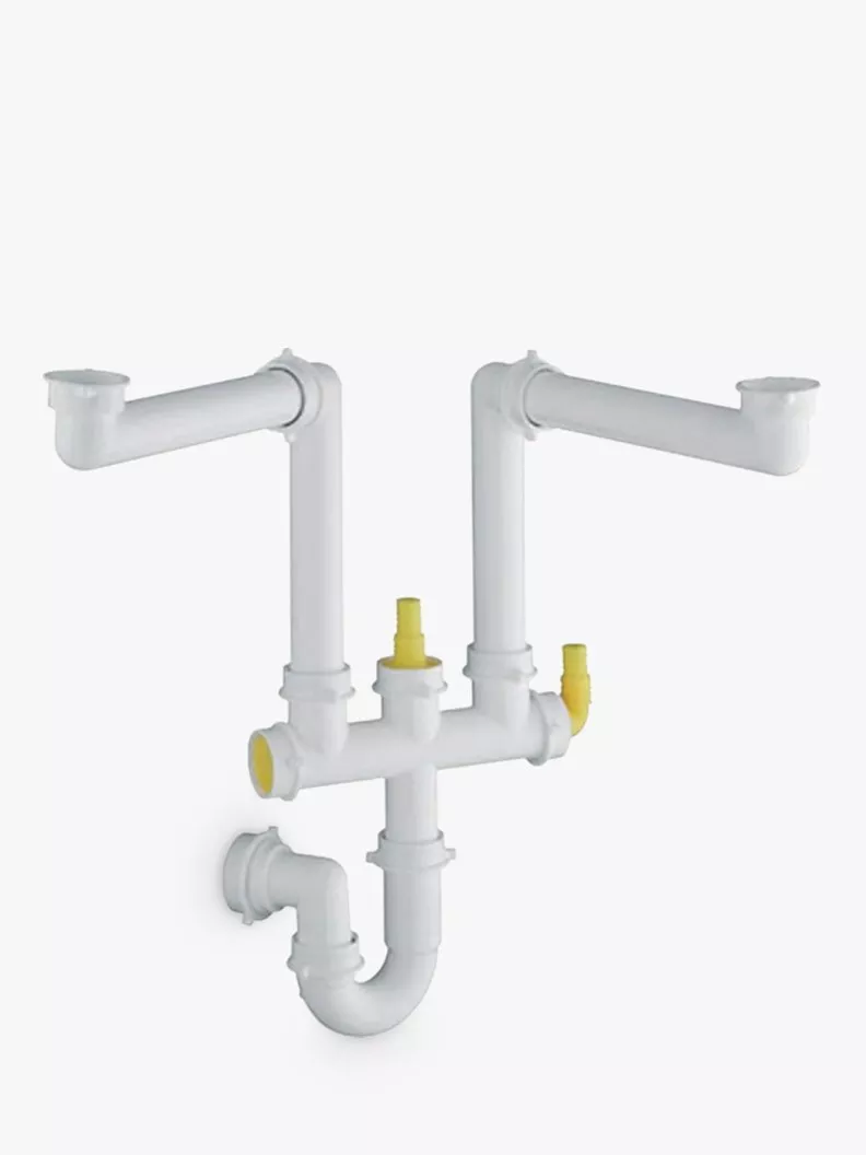 This plumbing kit with two 1.5-inch connectors and an odour trap is designed for all Blanco double bowl kitchen sinks. It has 2 machine connection points for washing machines or dishwashers.