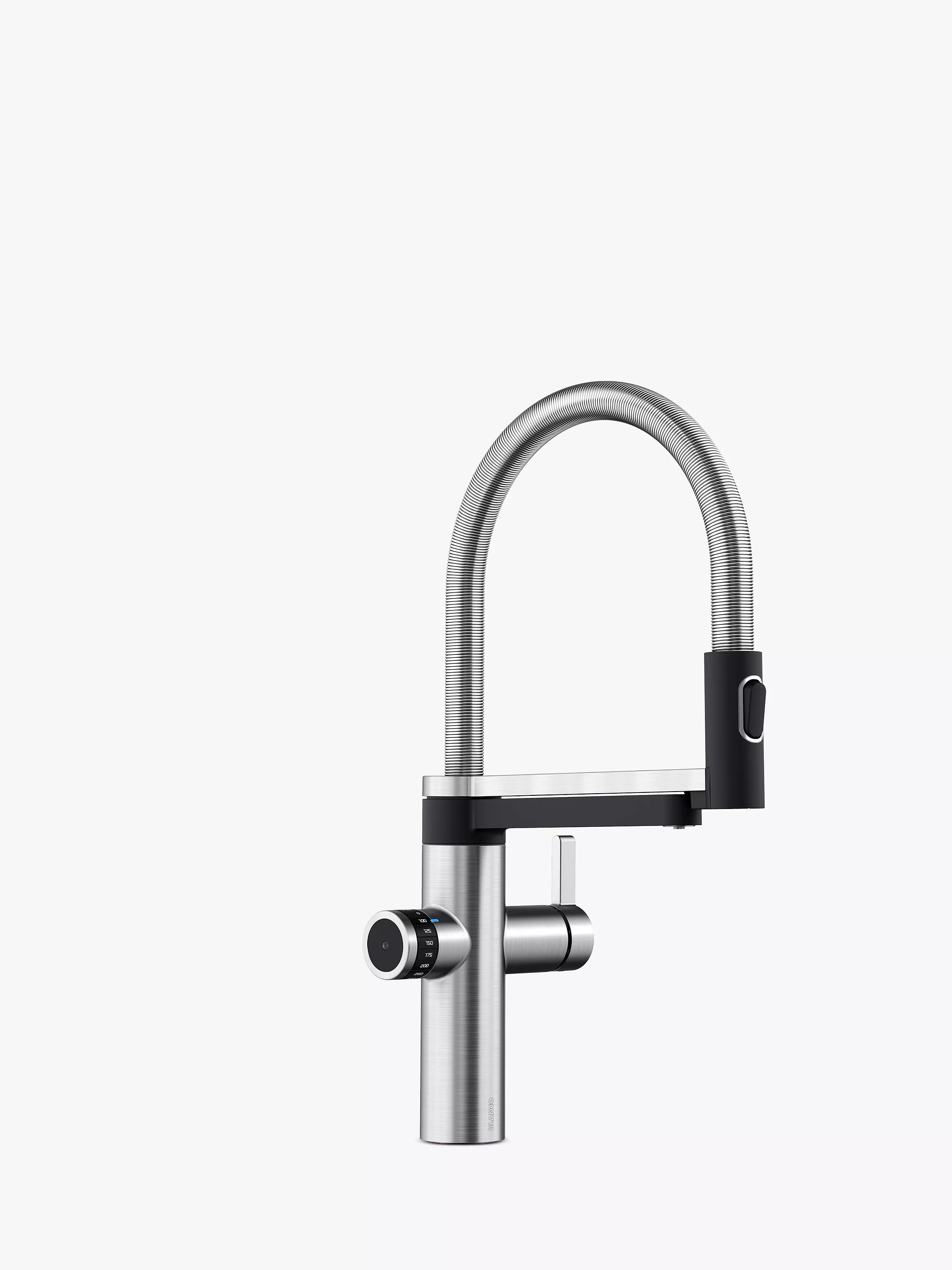 Made in Germany, this 3-in-1 design delivers standard hot and cold water via the mixer lever on the right, through a flexible spout with a dual-spray control nozzle. The magnetic mount makes it easy to secure the spout back into position.