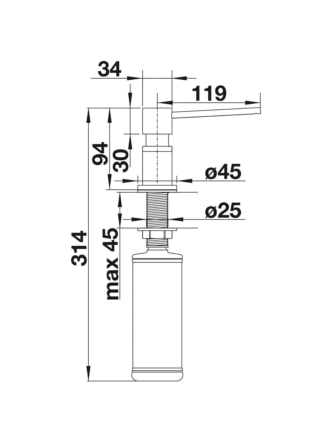 Sleek and timeless soap dispenser from BLANCO in a choice of finishes to suit your kitchen decor. A practical sink accessory designed with an optimal spout reach. Easy to refill from above without having to go under the kitchen sink.