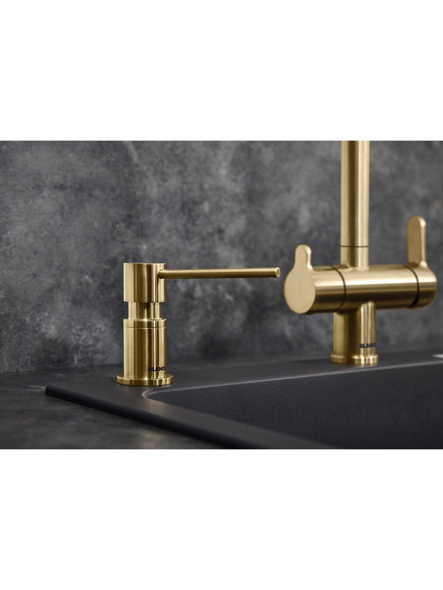 Sleek and timeless soap dispenser from BLANCO in a choice of finishes to suit your kitchen decor. A practical sink accessory designed with an optimal spout reach. Easy to refill from above without having to go under the kitchen sink.