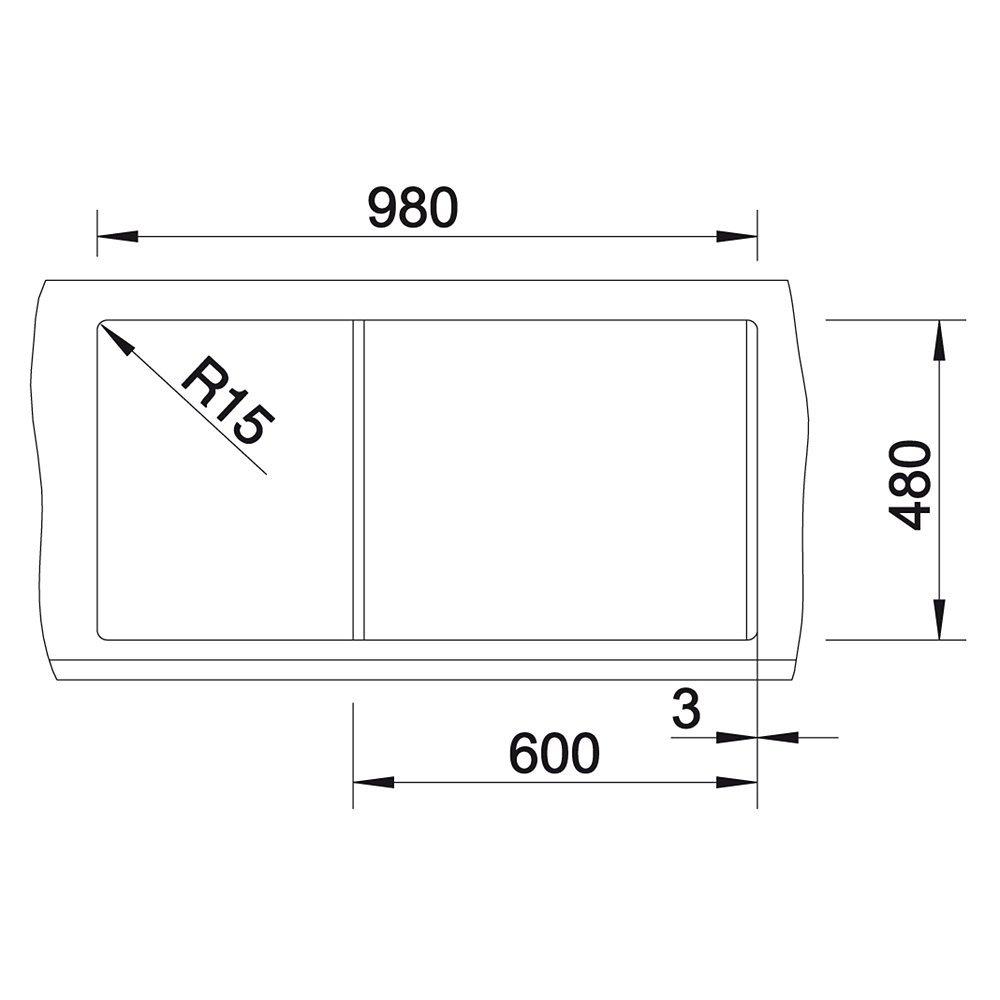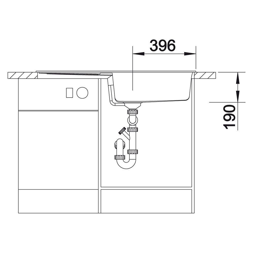 Bowl(s) Depth: 190mm. Cabinet width min:60cm. Cut out size:980 x 480 x R15. Waste fitting with space-saving pipe, 3 1/2'' pop-up waste.