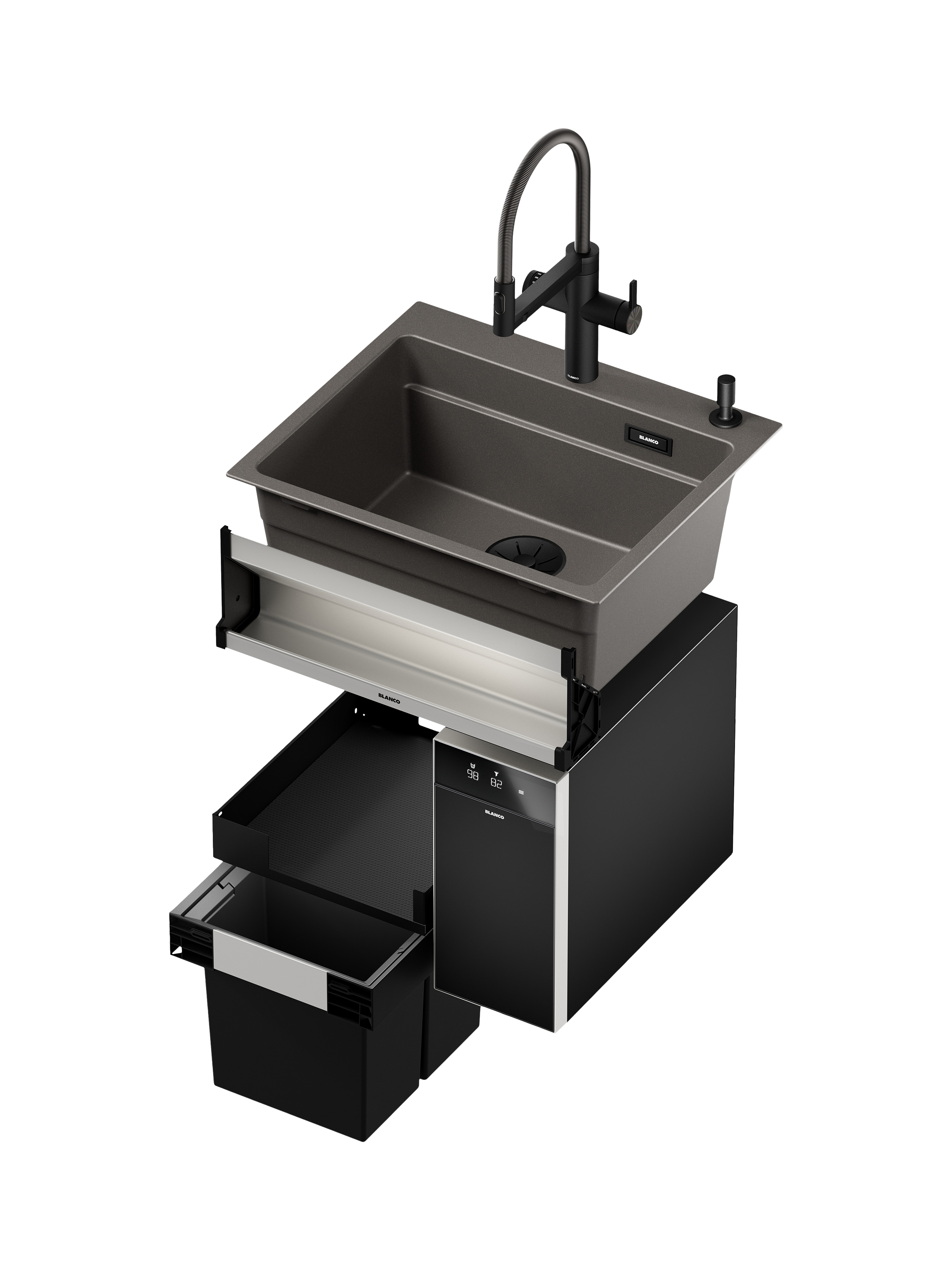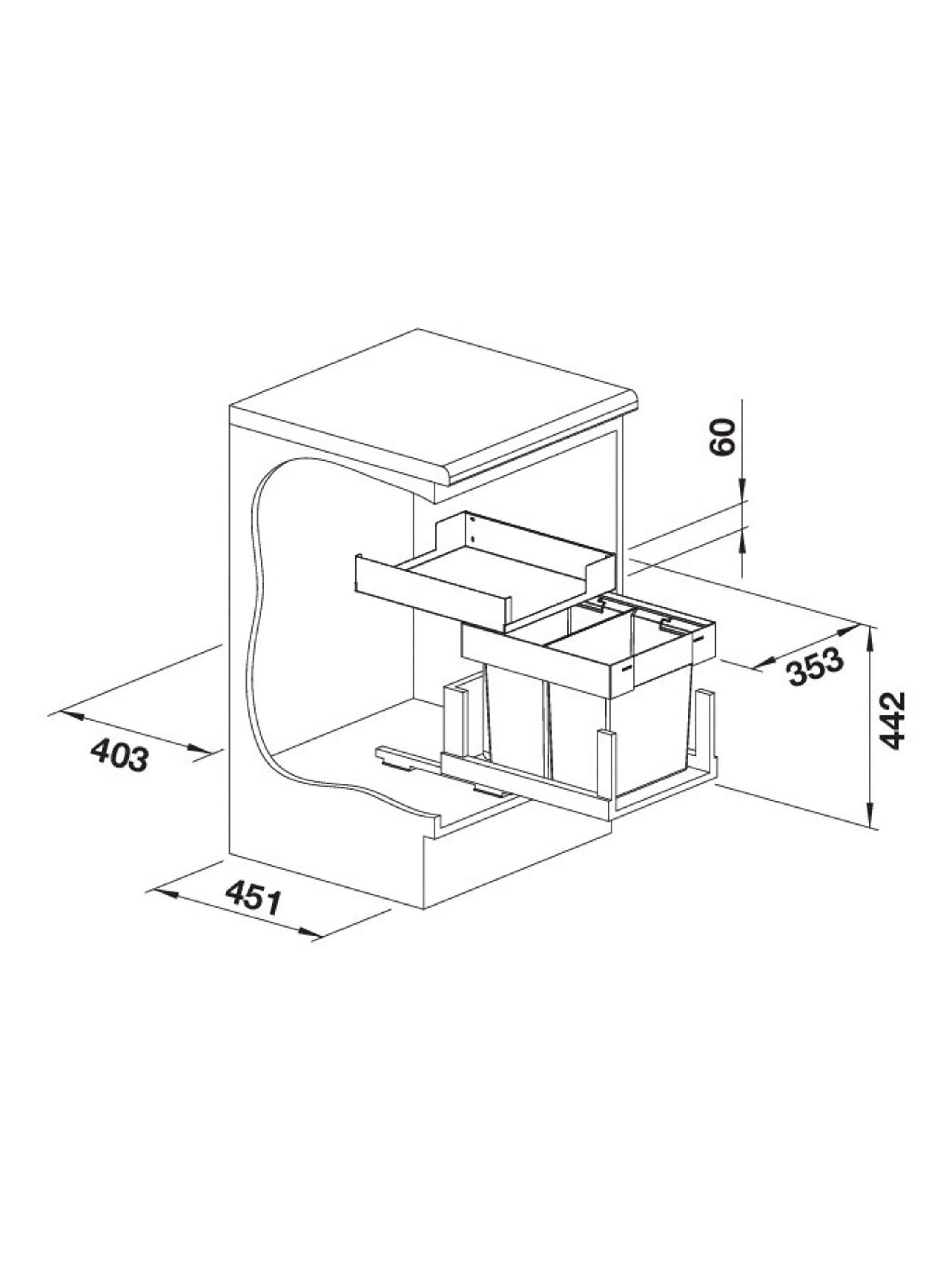 BLANCOSELECT II 40/2 Combi Under Counter Pull-Out Kitchen Bin, 2 x 26L, Dark Grey