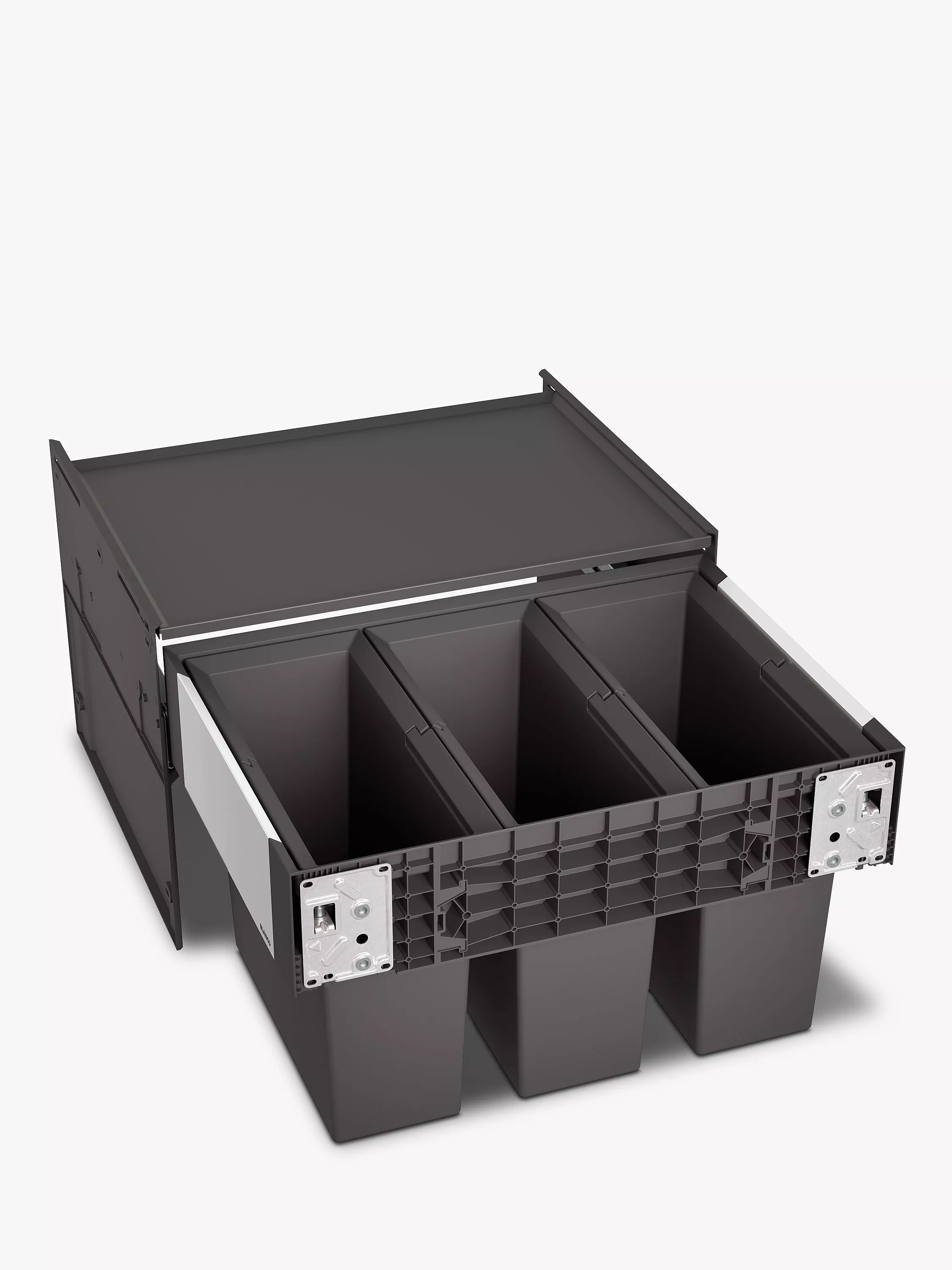 Keep kitchen waste concealed inside your kitchen cabinet or under the sink with this easy-to-install bin. Three 15-litre volume sections are designed for storing food waste as well as recycling. Made of heat-resistant polypropylene, the bin has easy-clean buckets with visually integrated handles to lift them out for emptying and cleaning.