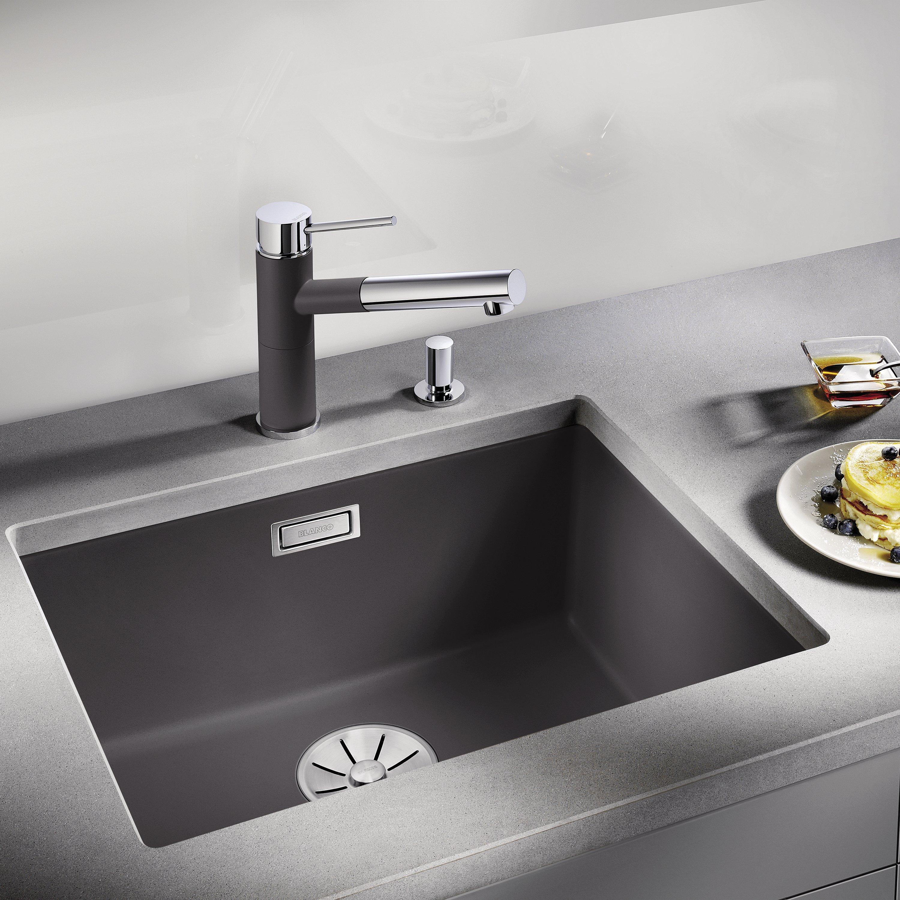 BLANCOSubline 500-U Single Bowl Undermounted Composite Granite Kitchen Sink, Rock Grey