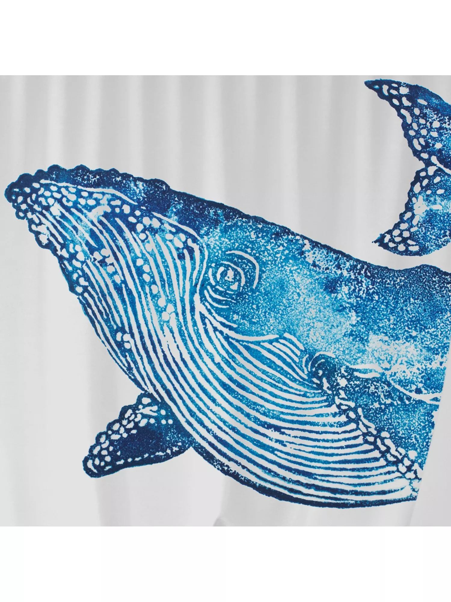 BlissHome's Creatures collection features vibrant marine-life images, skillfully designed. This polyester shower curtain depicts a humpback whale in inky blue. Look out for the matching bath mat.