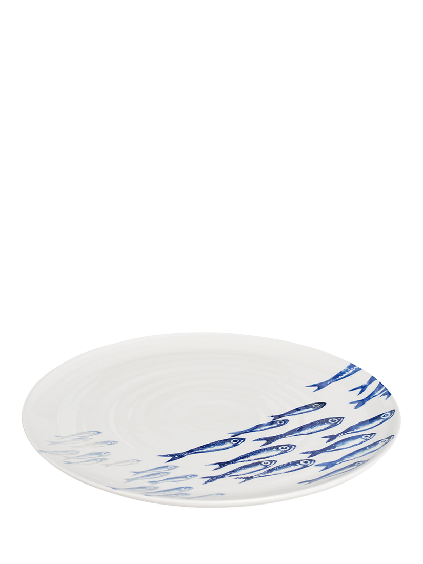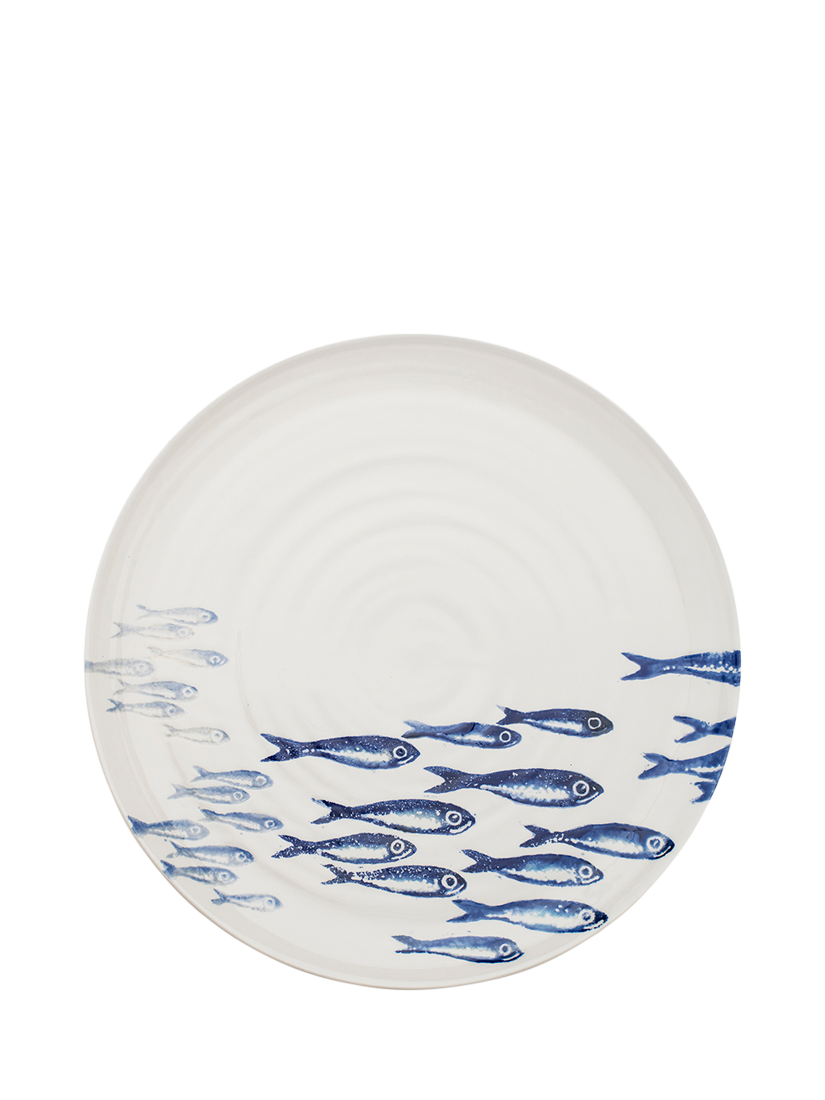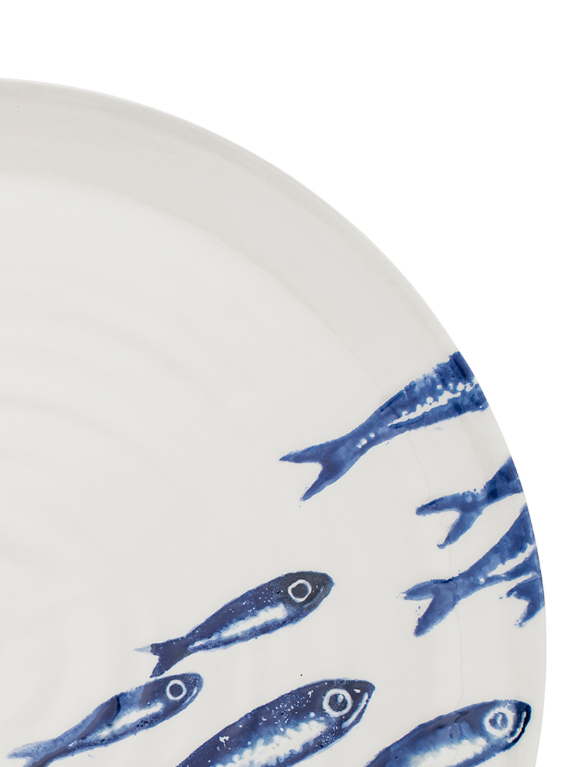 BlissHomeCreatures Sardines Round Earthenware Platter, 36cm, White/Blue