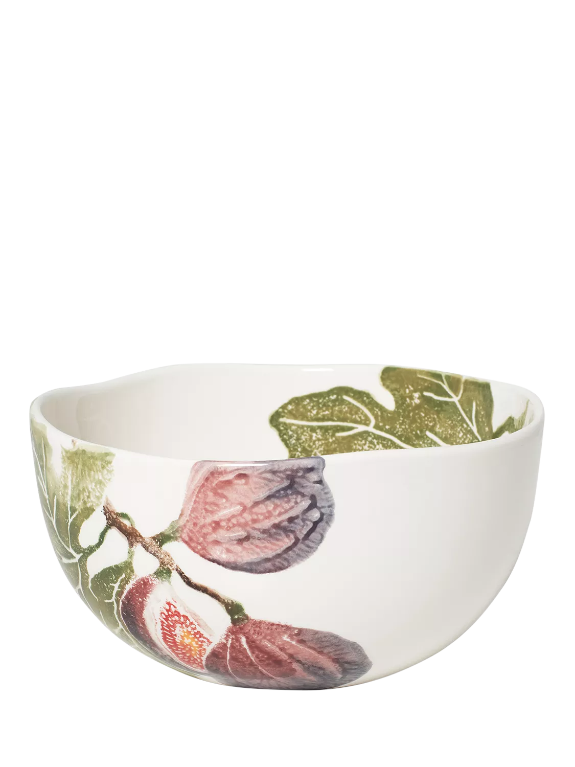 Salad bowl featuring a delicate fig illustration on earthenware. The hand-sponged design is made at a small factory in northern Italy. Dishwasher and microwave safe.