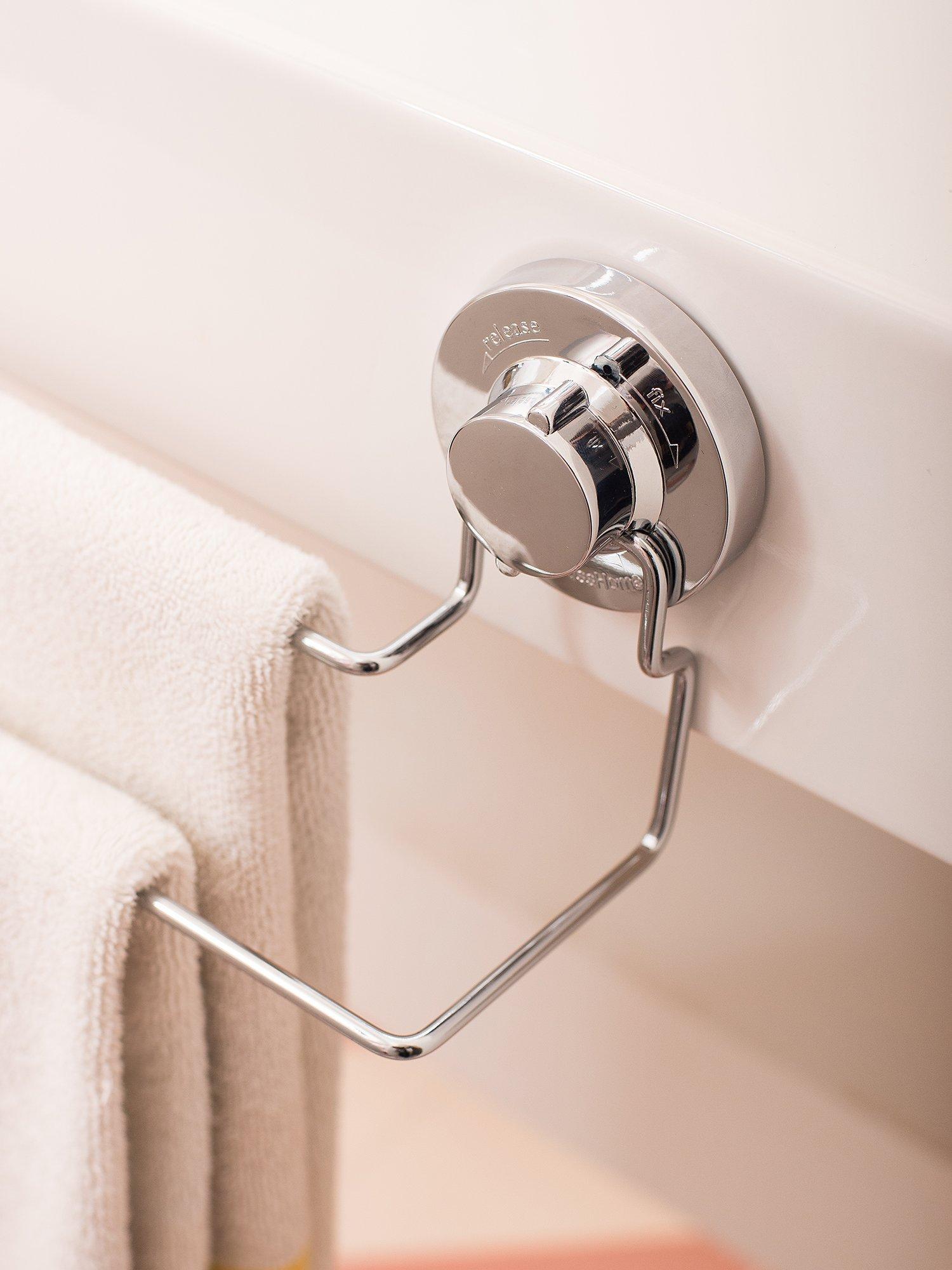 This chrome-plated wire hand towel rail is a new addition to the Lock N Roll collection. It attaches with suction cups on non-porous surfaces but also comes with 2 clear sticky pads so you can fix it to non-smooth or uneven surfaces if required.