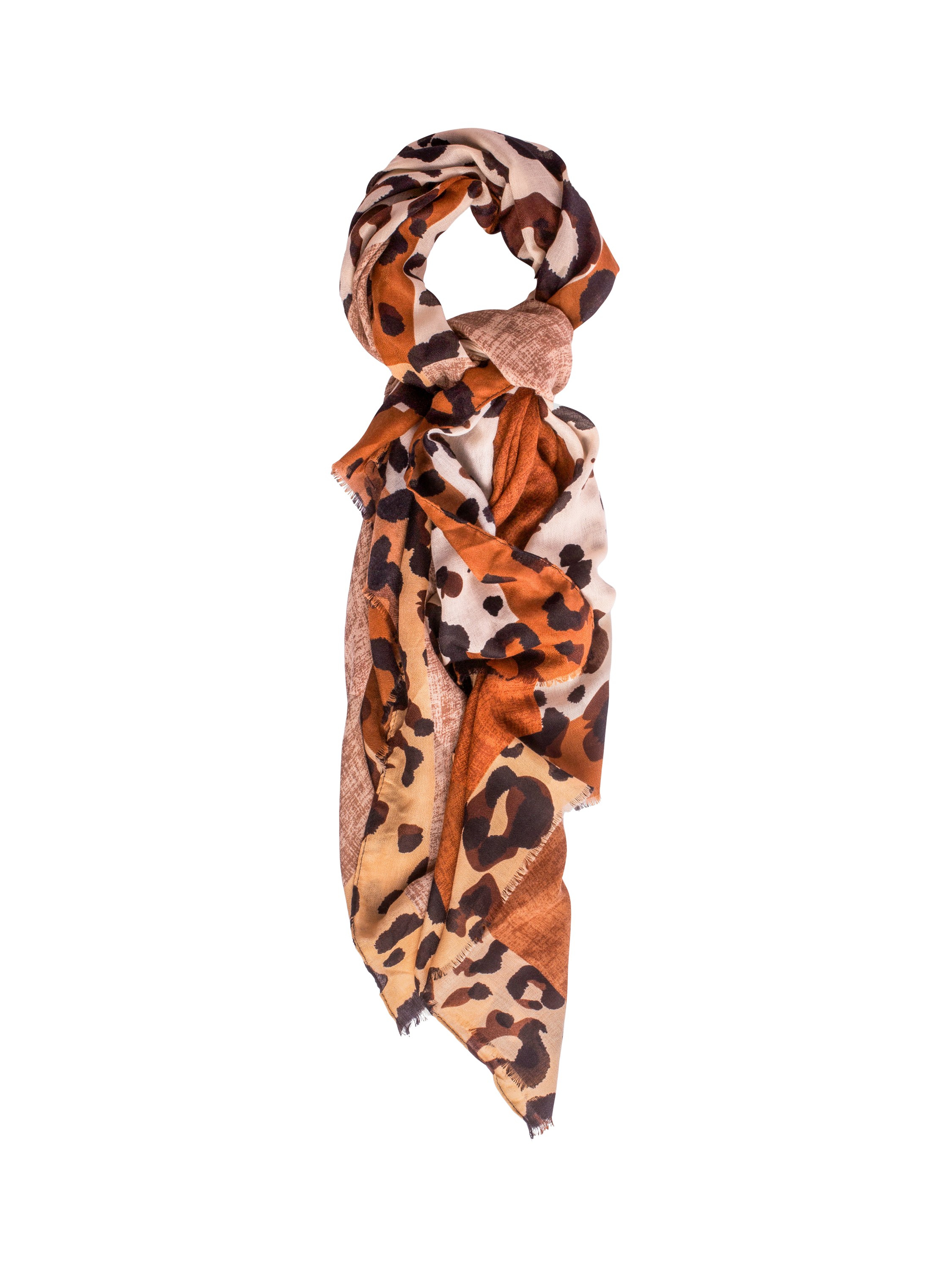 A lightweight scarf in an on-trend mix of animal print and textured colour blocks. The combination of earthy, neutral tones with a pop of colour adds impact to this versatile accessory, which is finished with an animal-print border and a fine fringe.