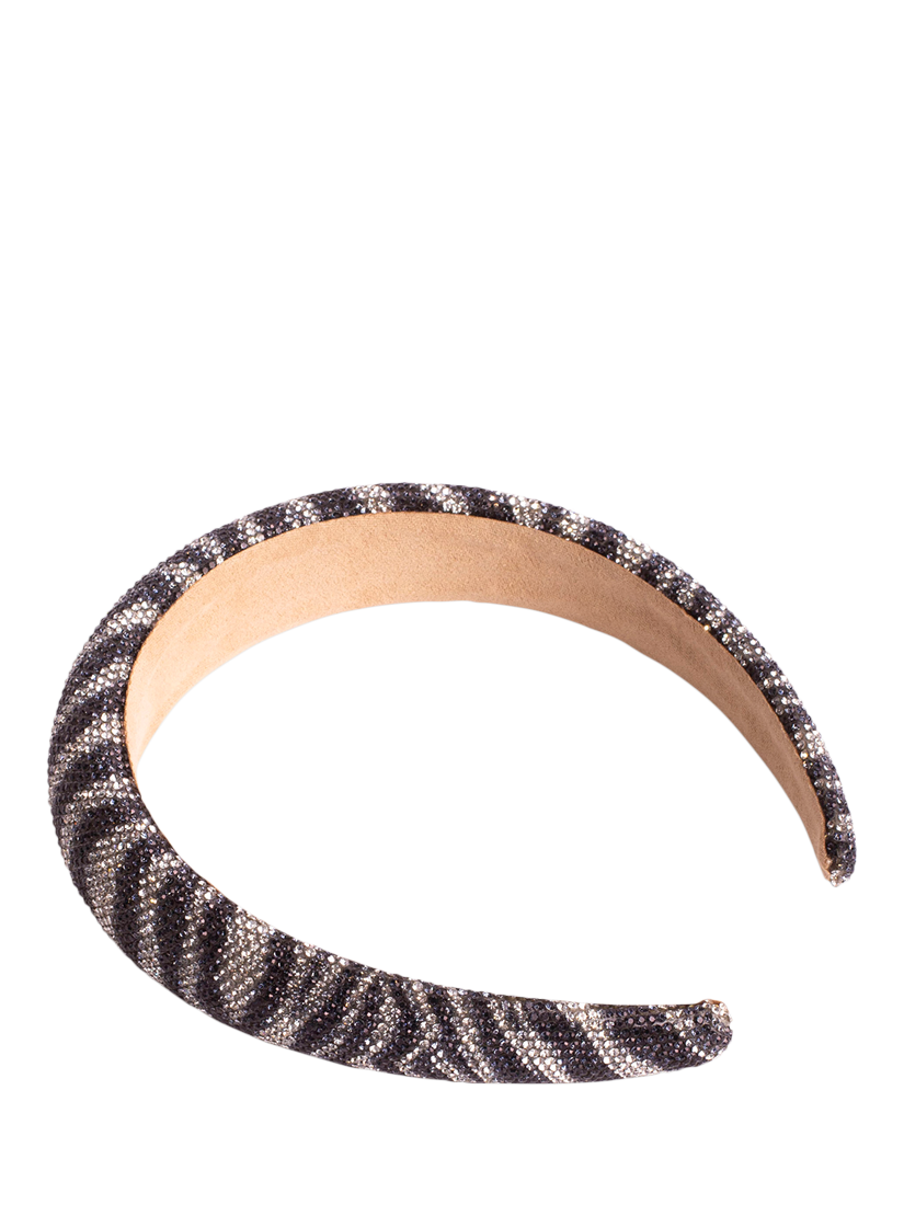 An all-over stone encrusted animal print Alice band, perfect for special occasions or when you want to make a statement, this Alice band will make you stand out from the crowd.