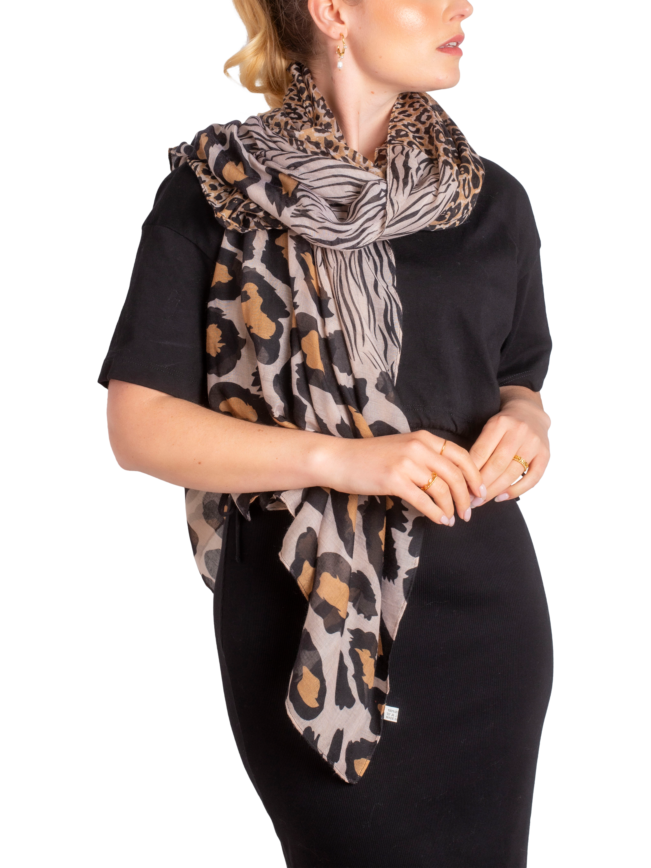 The Betsy Lightweight Scarf will add stylish flair to your every day look. It's warm brown tones and leopard print pattern are easy pair with any outfit,. Perfect for any season!