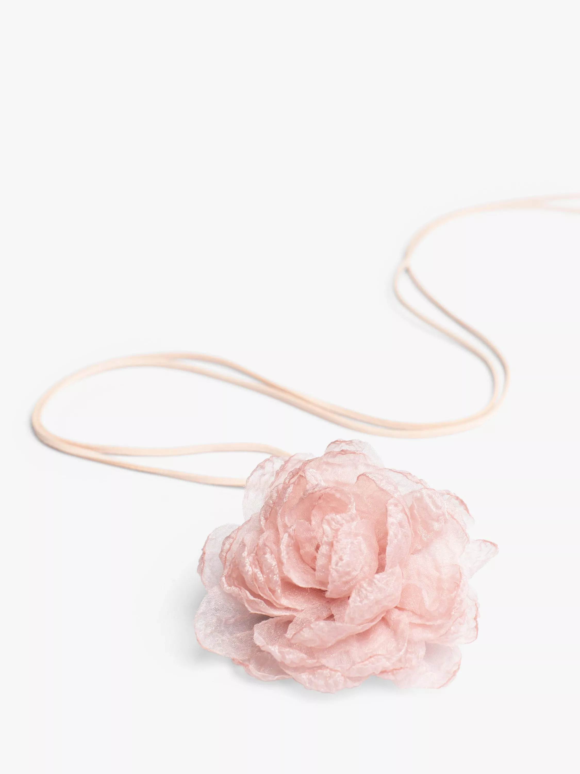A delicate chiffon corsage with a suedette tie and clip that can be tied on the neck, wrist or clipped to any outfit.