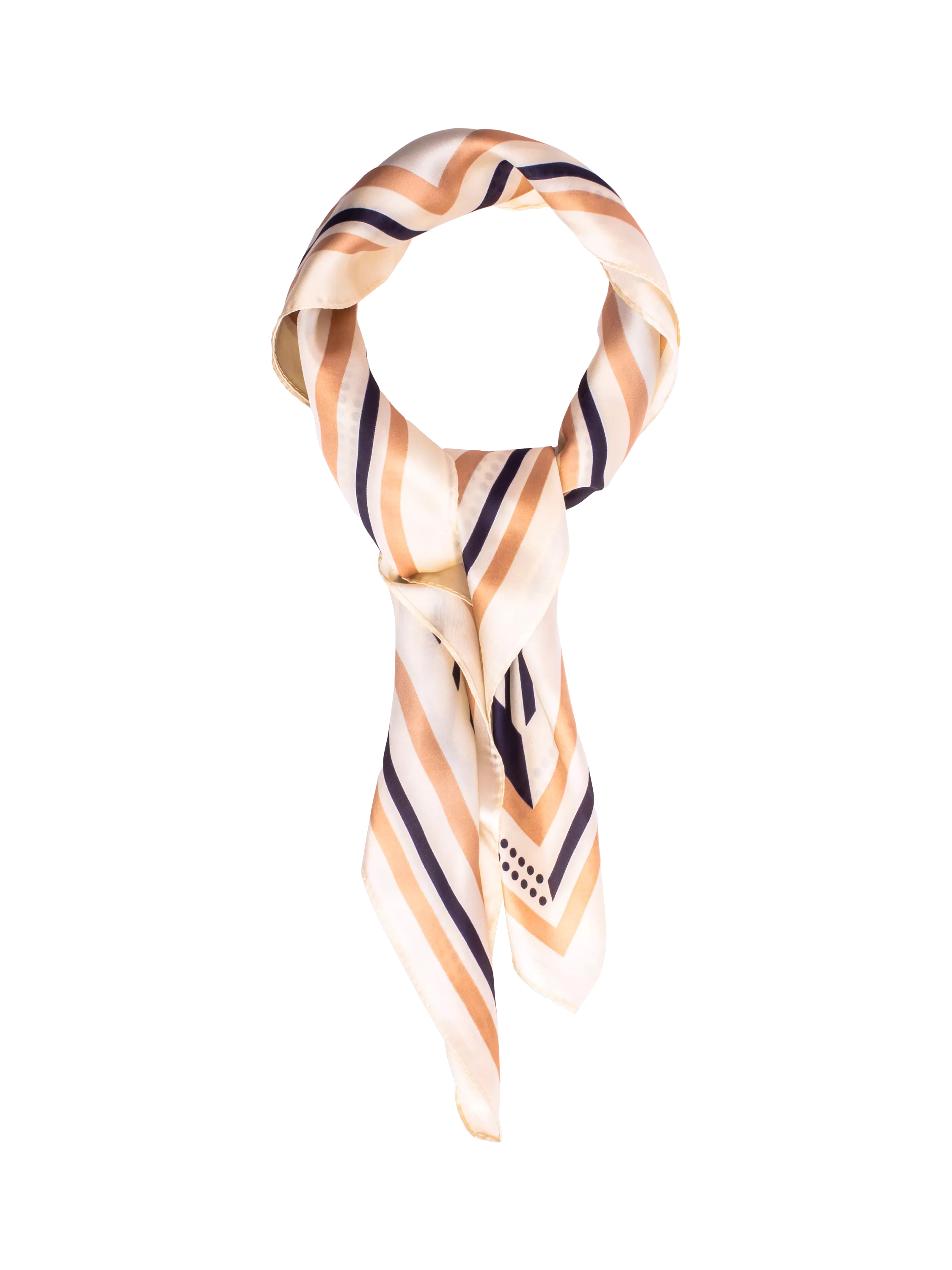 This satin feel neck scarf with a geometric print is a chic and versatile accessory, easy to pair with various outfits.