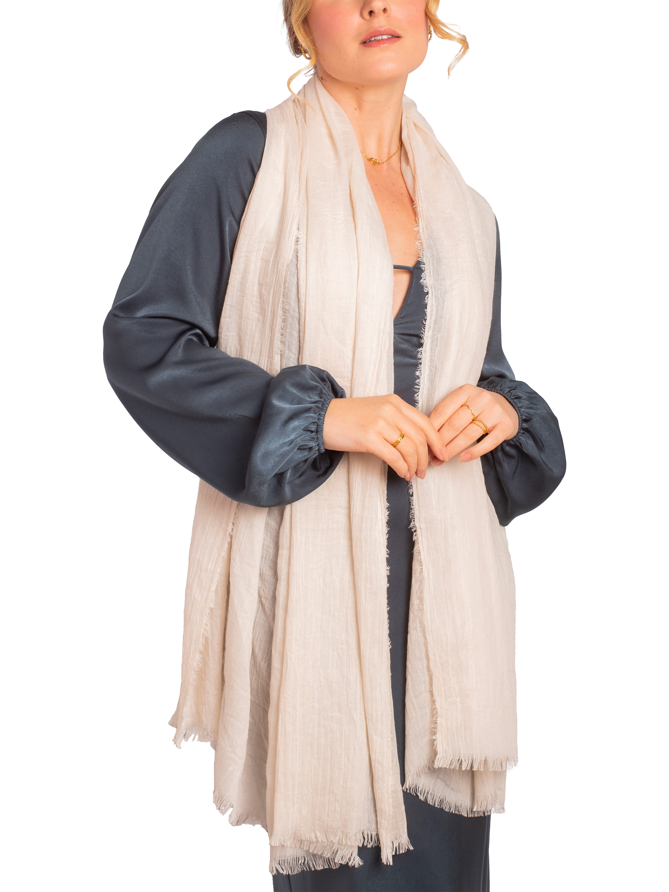Elevate your everyday look with this lightweight linen look scarf. An effortless addition to any outfit.