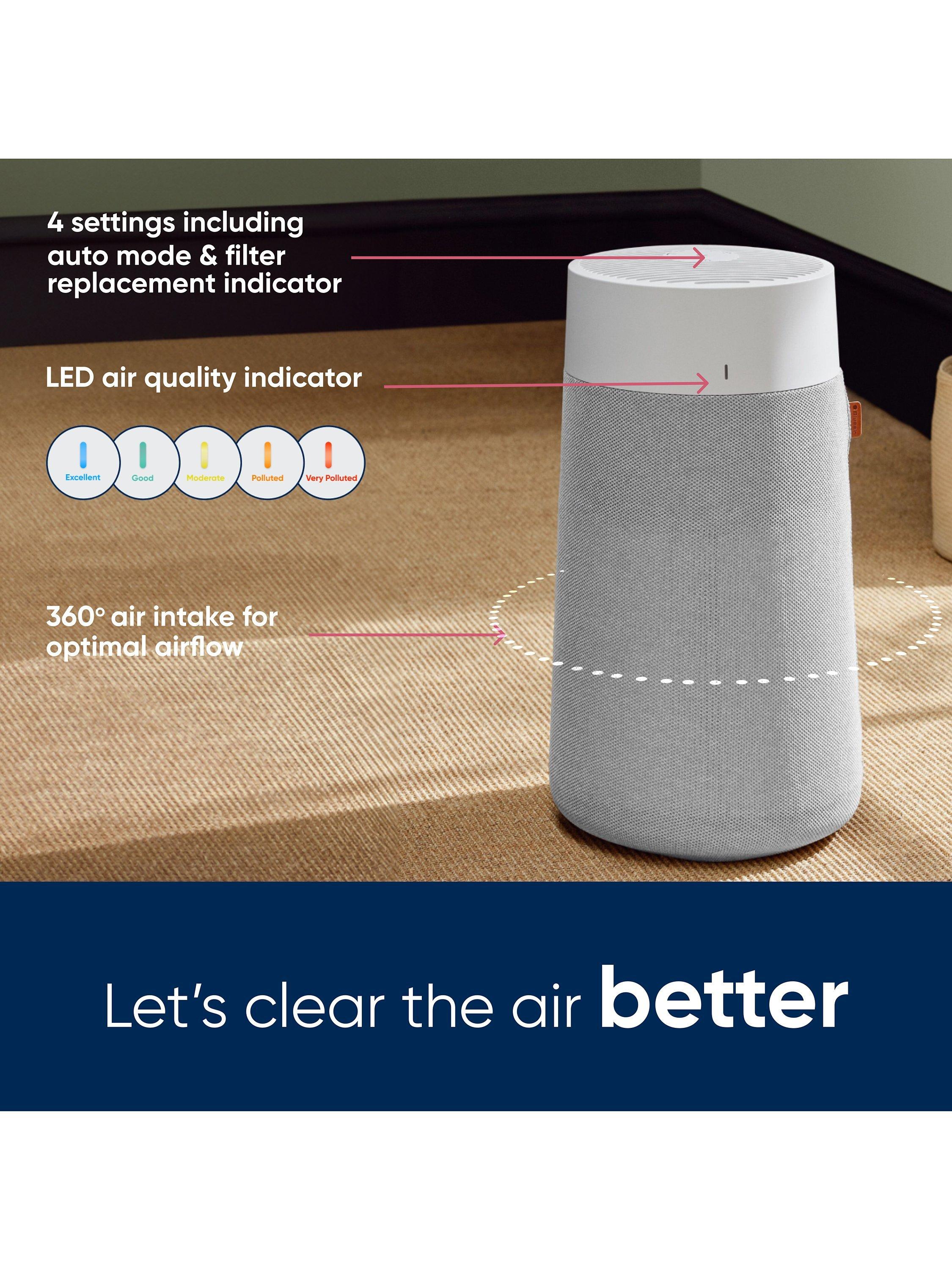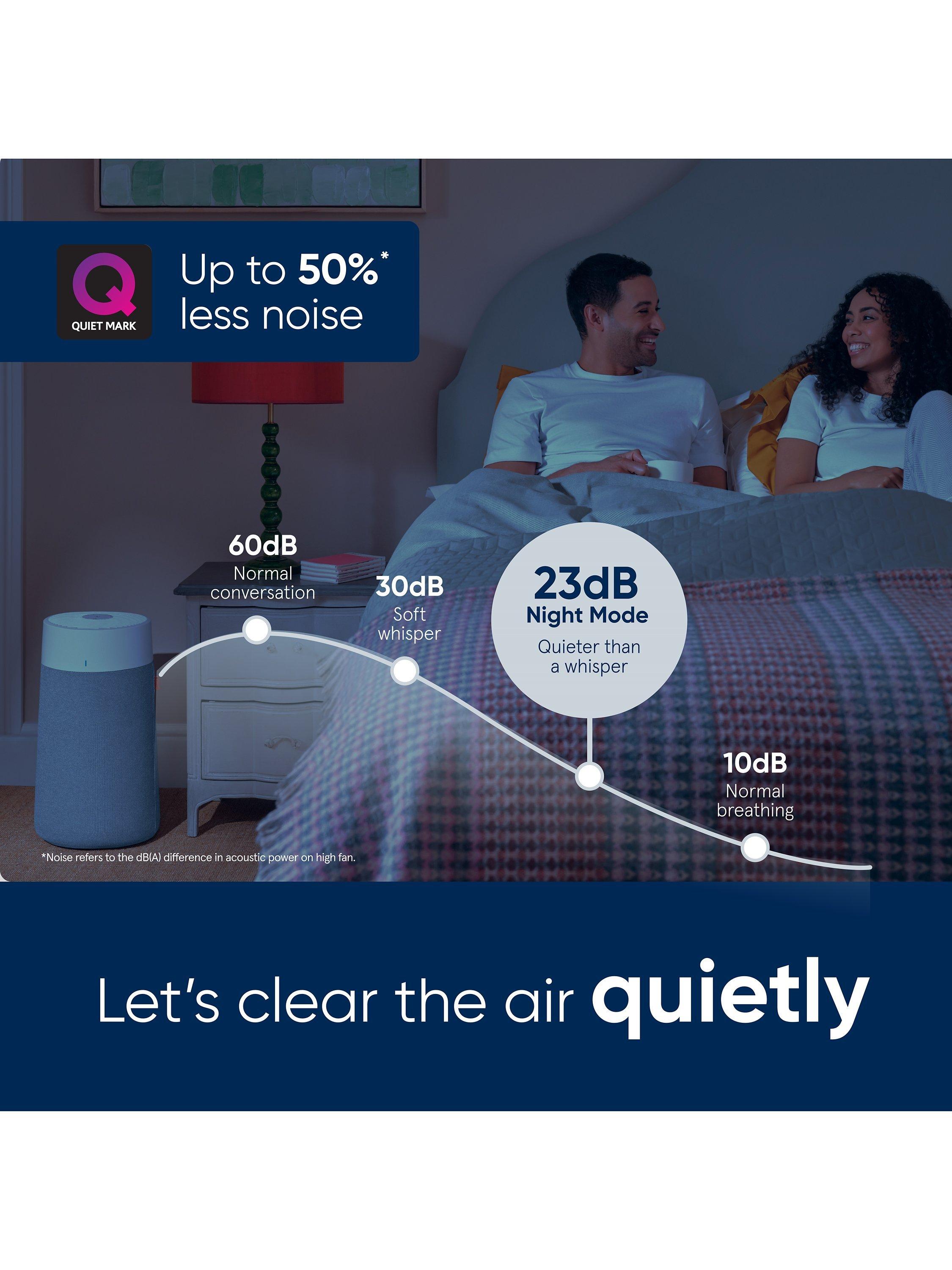 Quieter than a whisper at only 23dB on low fan speed. The Blue range are certified by Quiet Mark as one of the quietest air purifiers, perfect for use in your bedroom for a good nights sleep. The intuitive display has an easy to read 5 colour air quality indicator and filter change reminder, while the two-button design lets you easily control 4 speeds, select auto or night mode, adjust light levels and enable child lock.