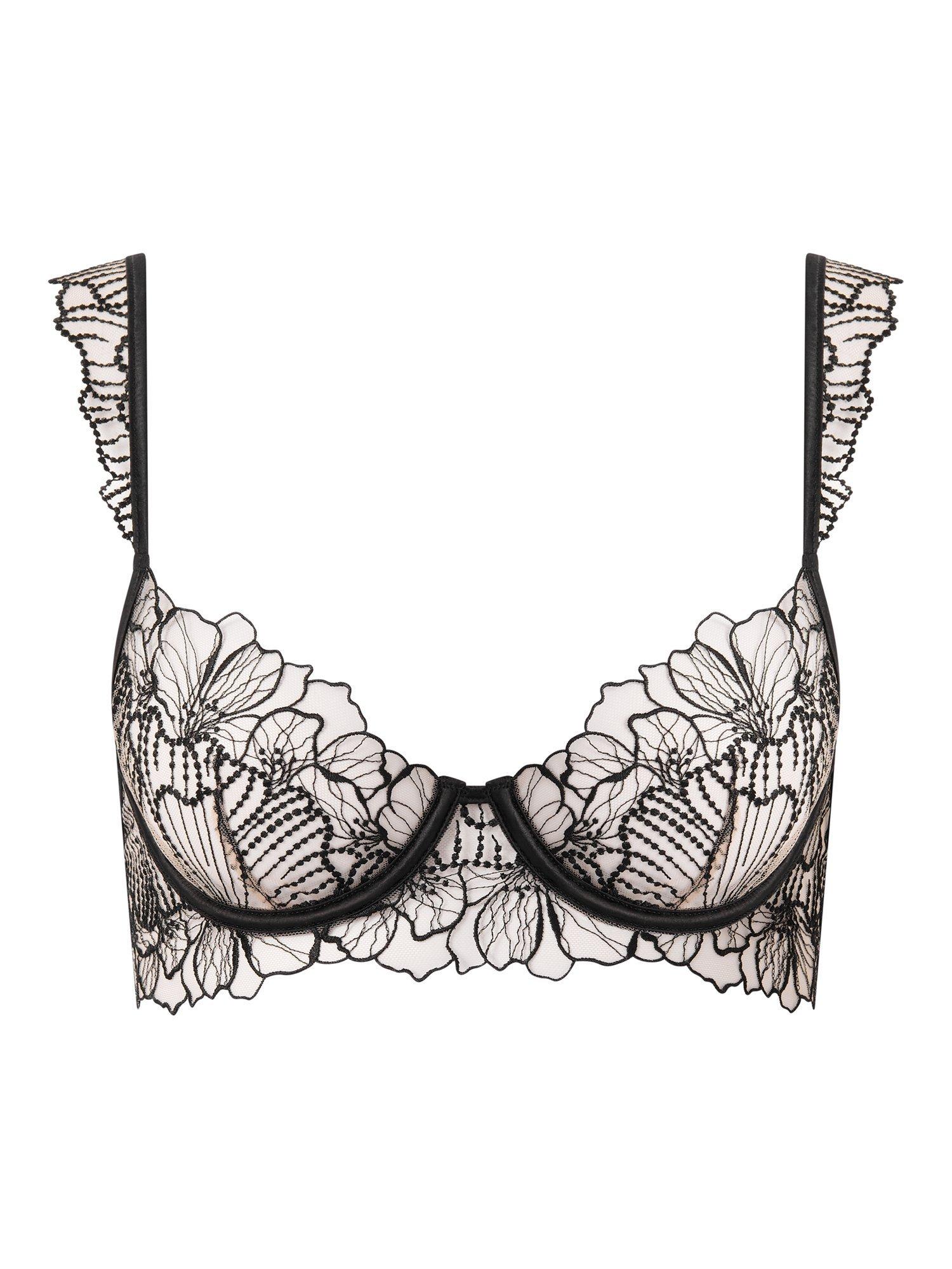 The Amarosa Bra blends delicate craftsmanship with modern structure. Designed with a lace-look on sheer mesh, this longline style features underwired demi cups for gentle lift and definition. Winged adjustable straps and extended detailing through the underband add balance and support, while a rear hook-and-eye fastening completes the fit.
