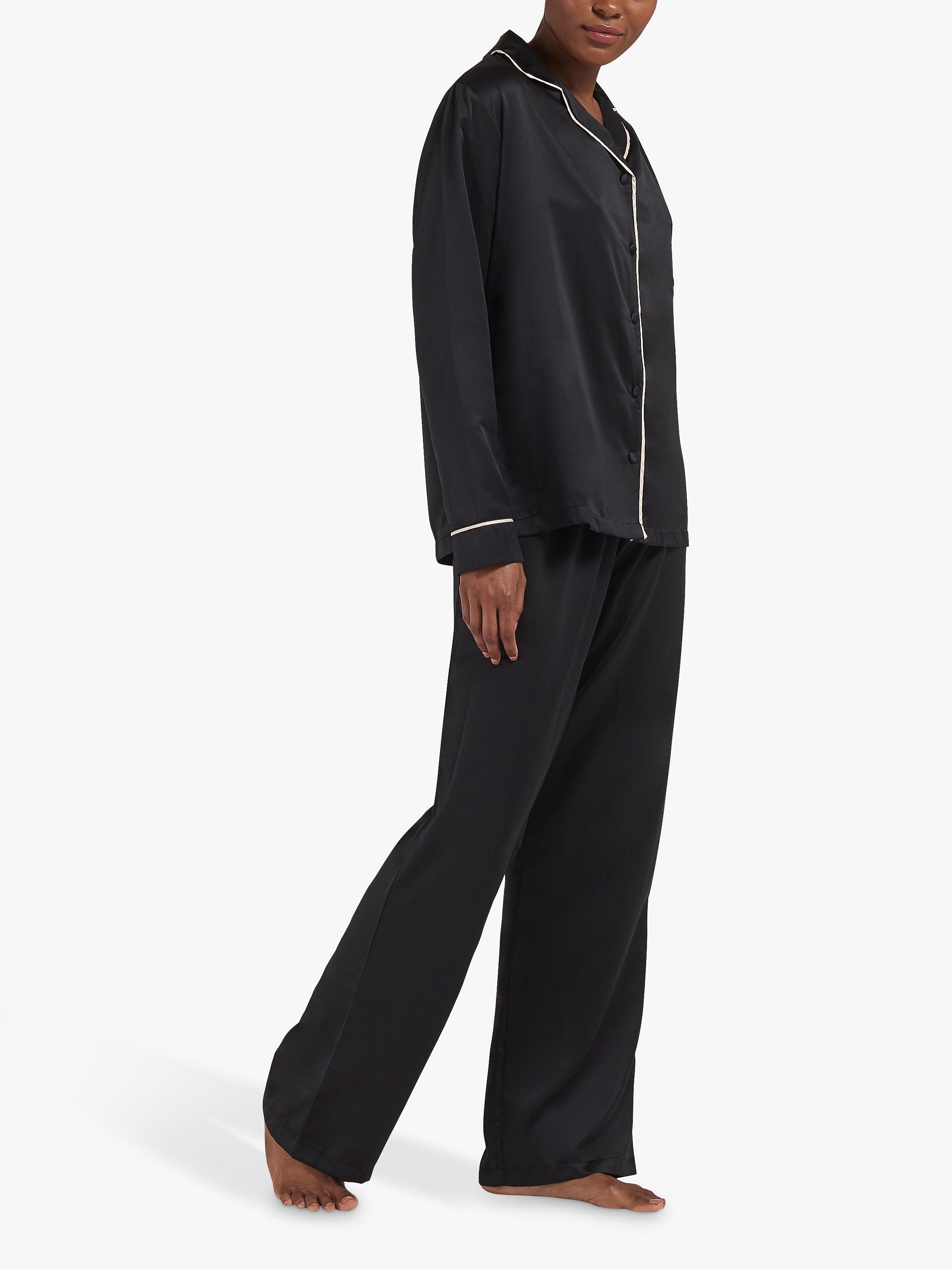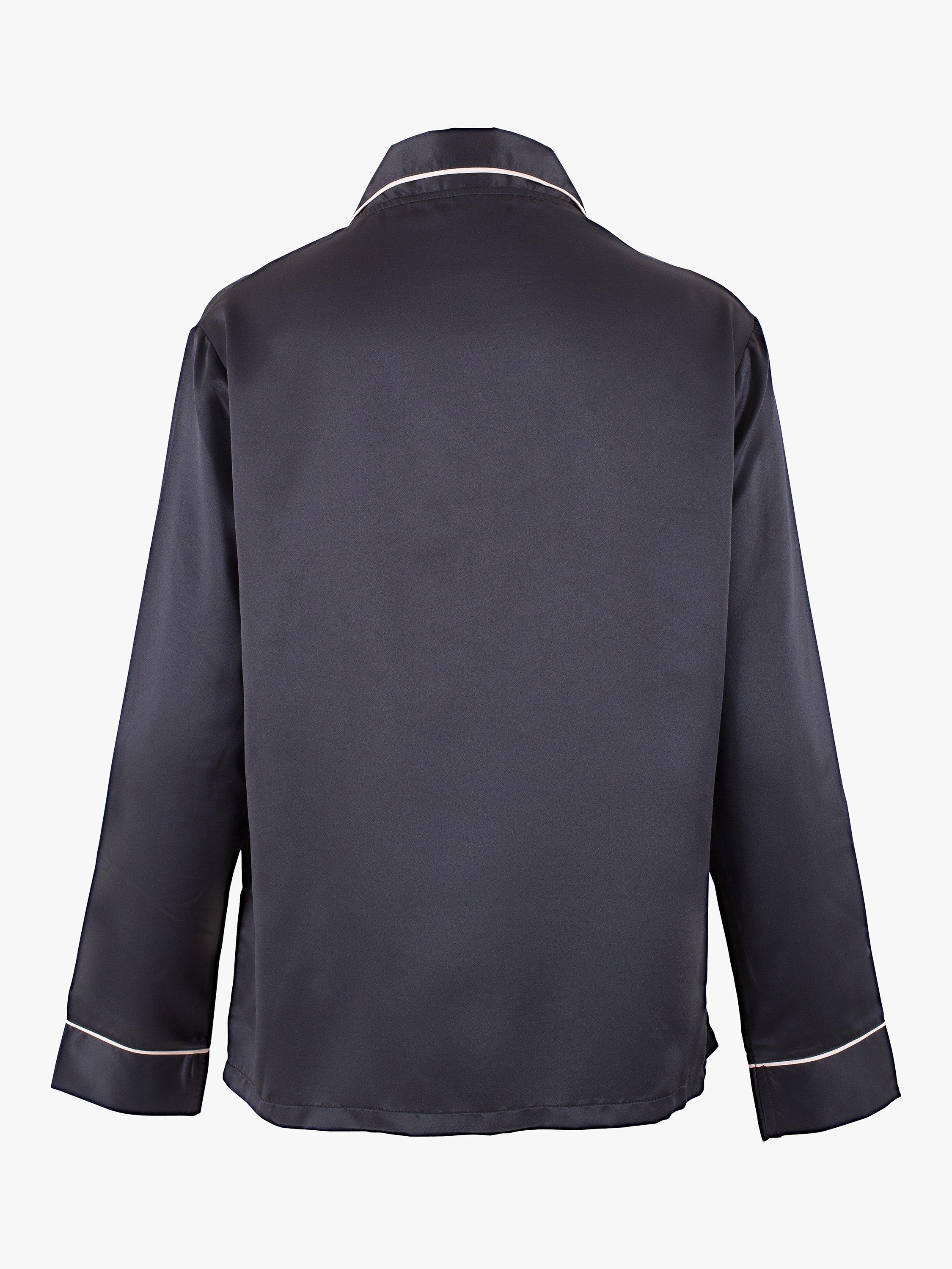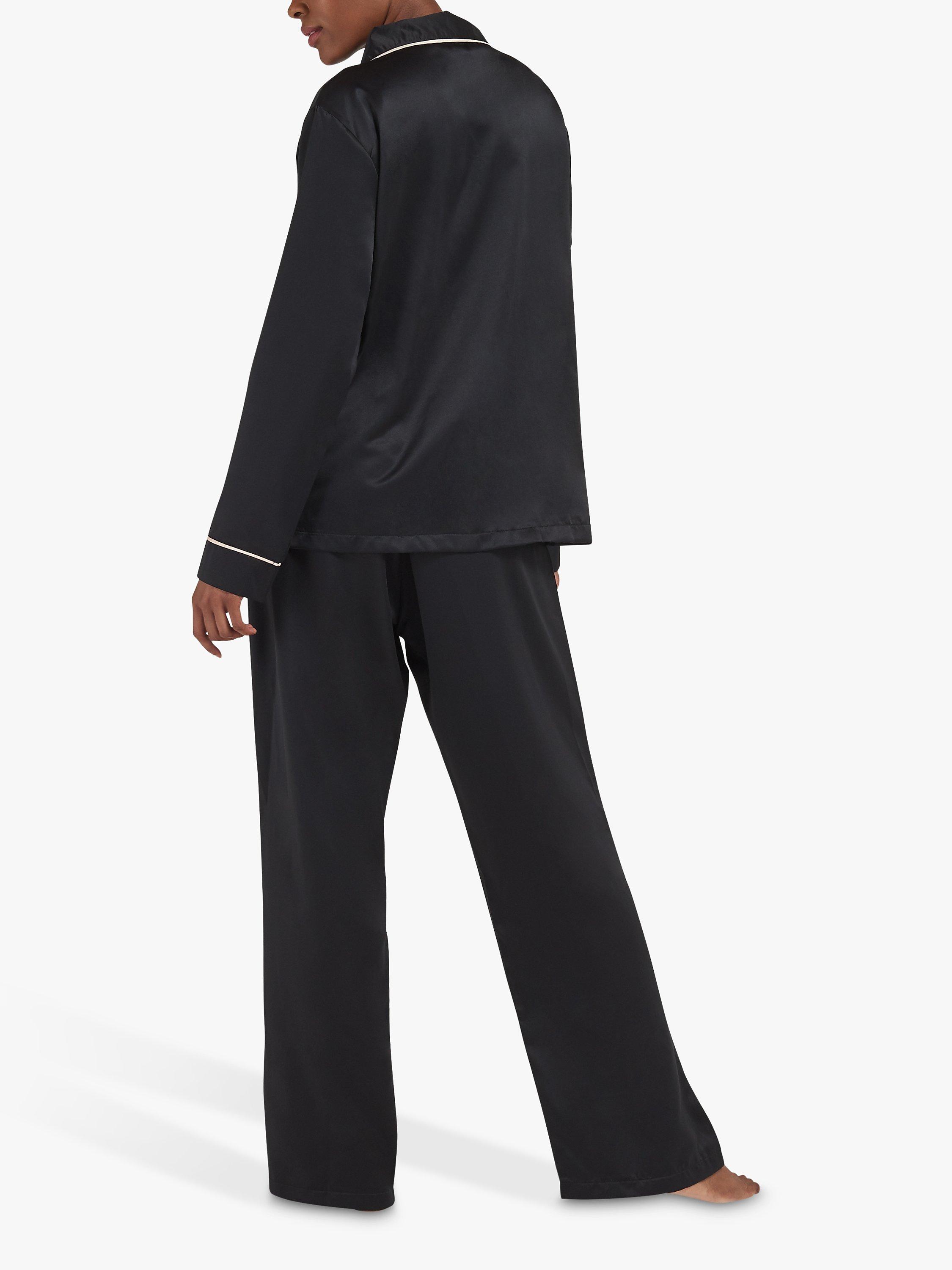 Timeless in style with a nod to the luxury pyjamas worn by Coco Chanel, this set is made from soft satin that sits soft and cool against the skin. The shirt is trimmed with satin piping along the collar, pocket and cuffs, while the trouser is finished with a large black satin bow for a modern take on a classic pyjama look.