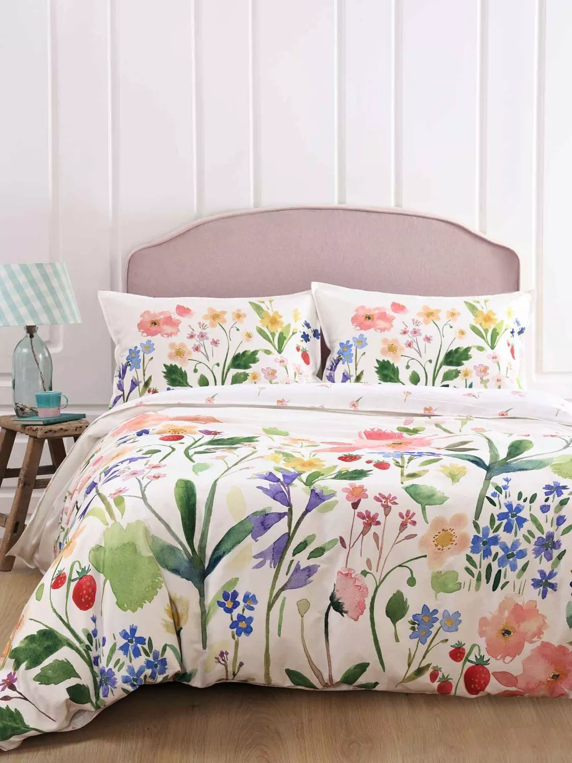 Beautiful, bold and colourful florals are synonymous with the bluebellgray brand and the new "Berneray" design is set to become a bluebellgray floral classic. Named after the beautiful island of Berneray, this design is bursting with wild flowers, forget-me-nots, cherry blossom, primroses and wild strawberries to create a spring like colour palette that will make any bedroom feel instantly bright and beautiful.
