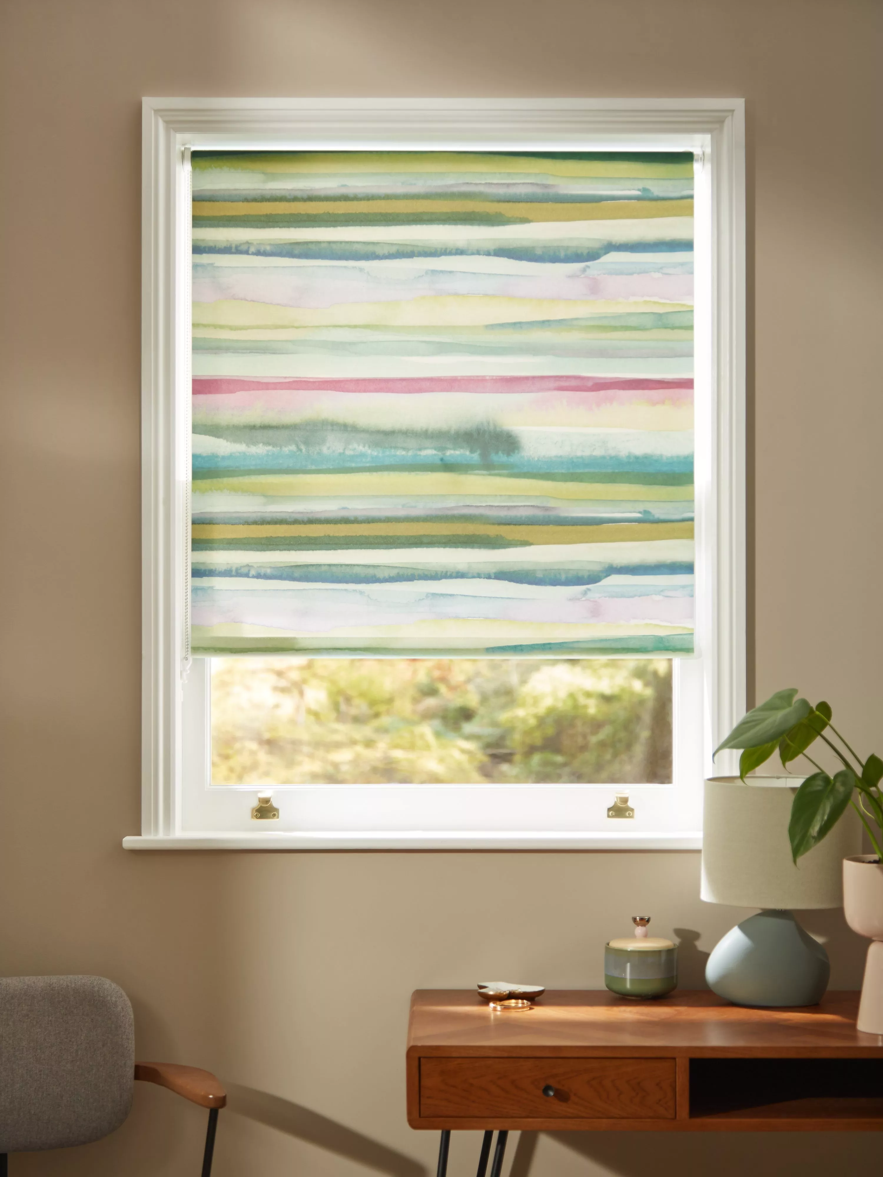 Ideal for any room, these curtains feature a painterly pastel stripe.