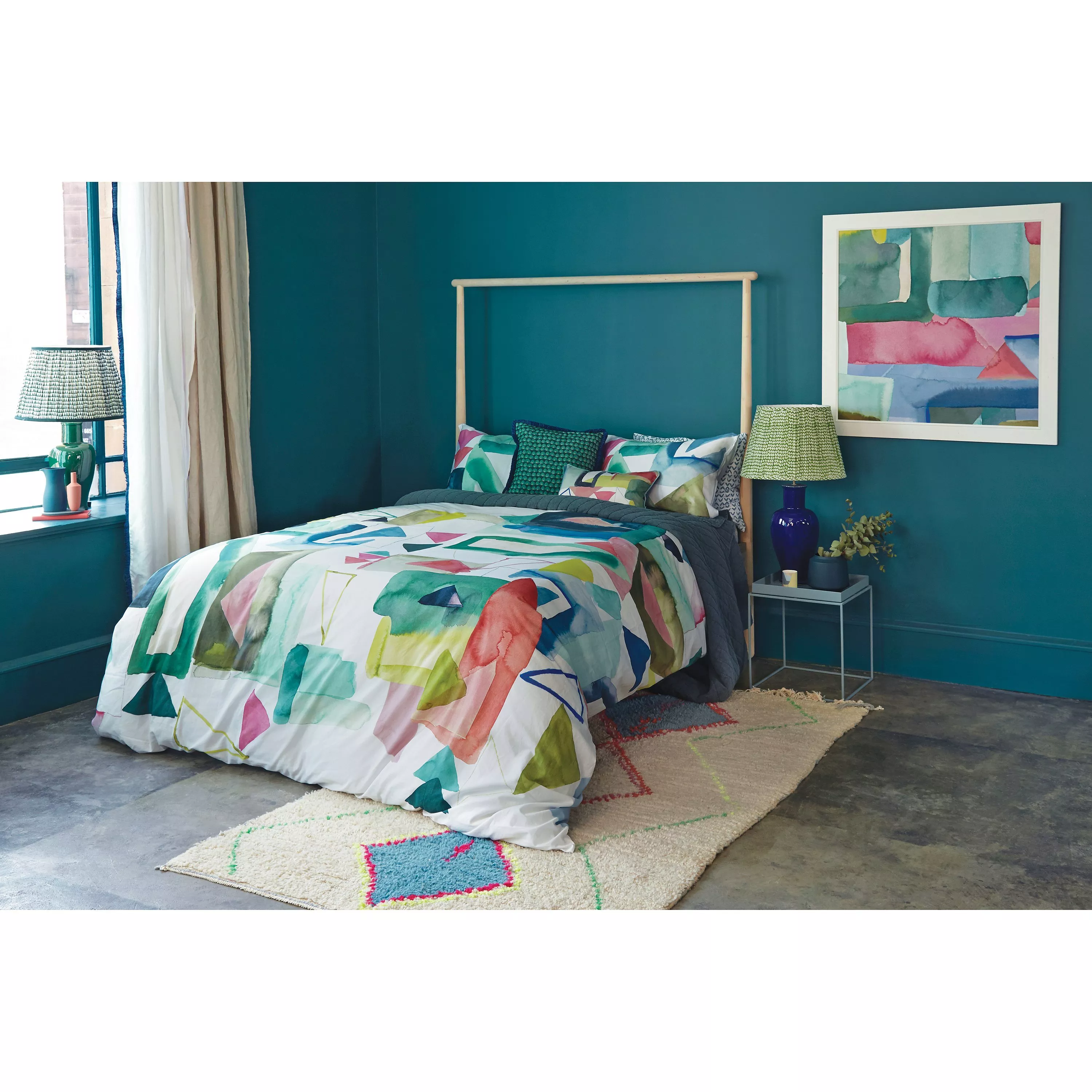 This bright, bold linen makes a real statement in your bedroom. Abstract shapes are given a diffused, painterly look to soften the edges and emphasise the bluebellgray signature hand painted style.