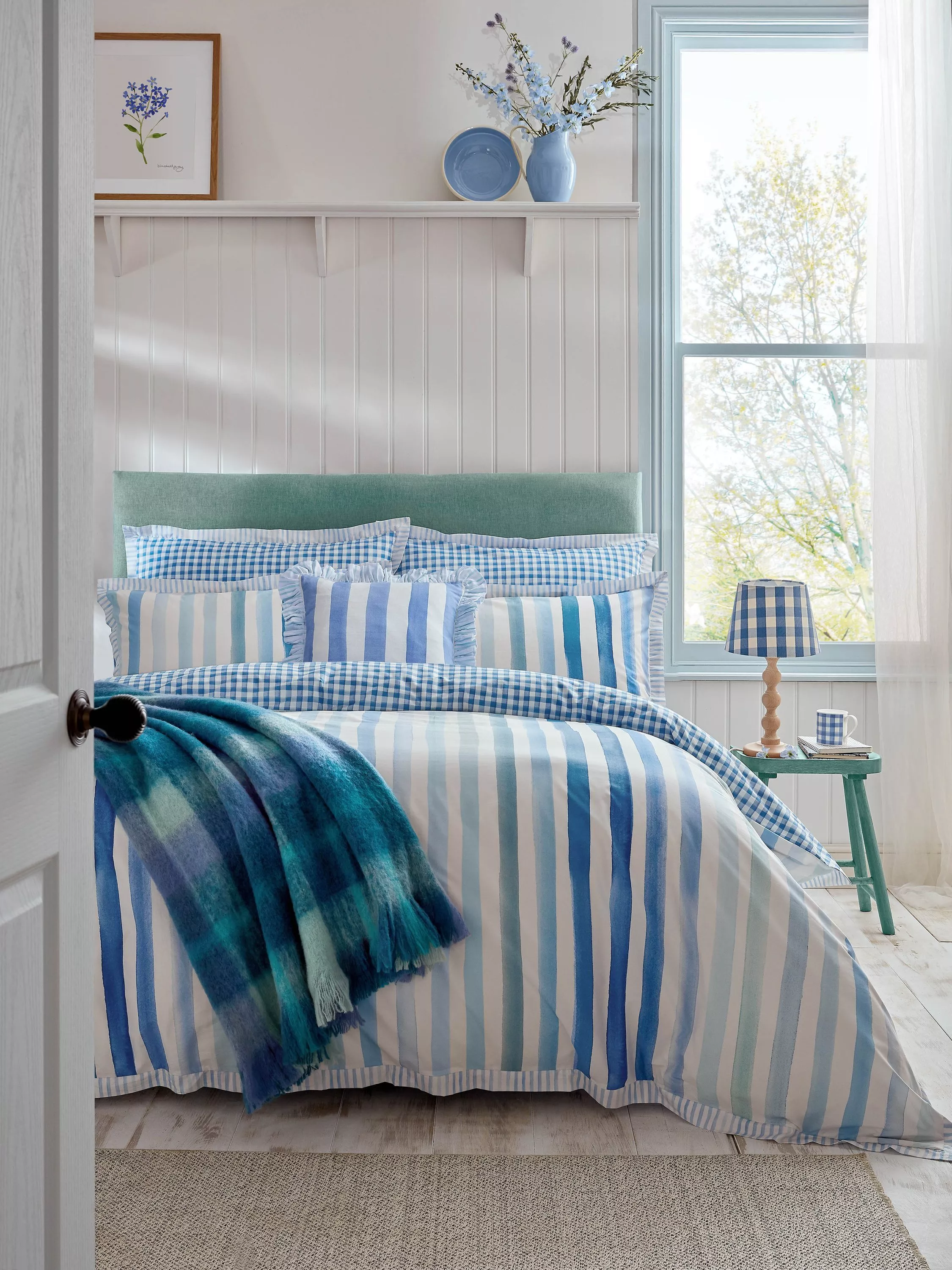 Finished with a smart contrast Oxford edge, the design reverses to a watercolour gingham, giving you two beautiful ways to style your bed.