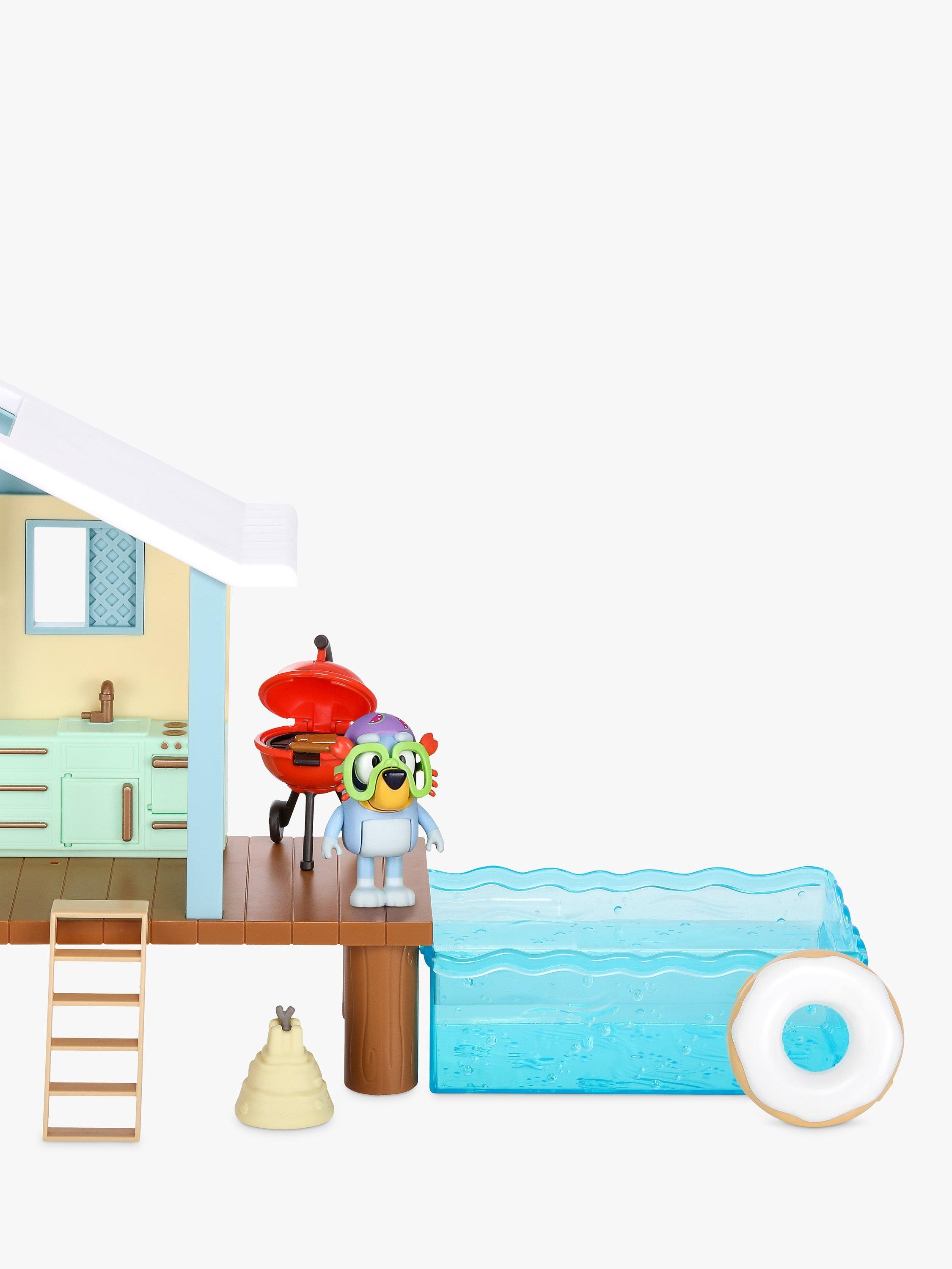 There are different play areas for your child's 6cm Bluey figure to play in. Explore the cabin with its toilet and shower, kitchen, deck and lounge that converts to a bedroom, or expand to include a pool for Bluey to swim in - thank goodness she's wearing her goggles!