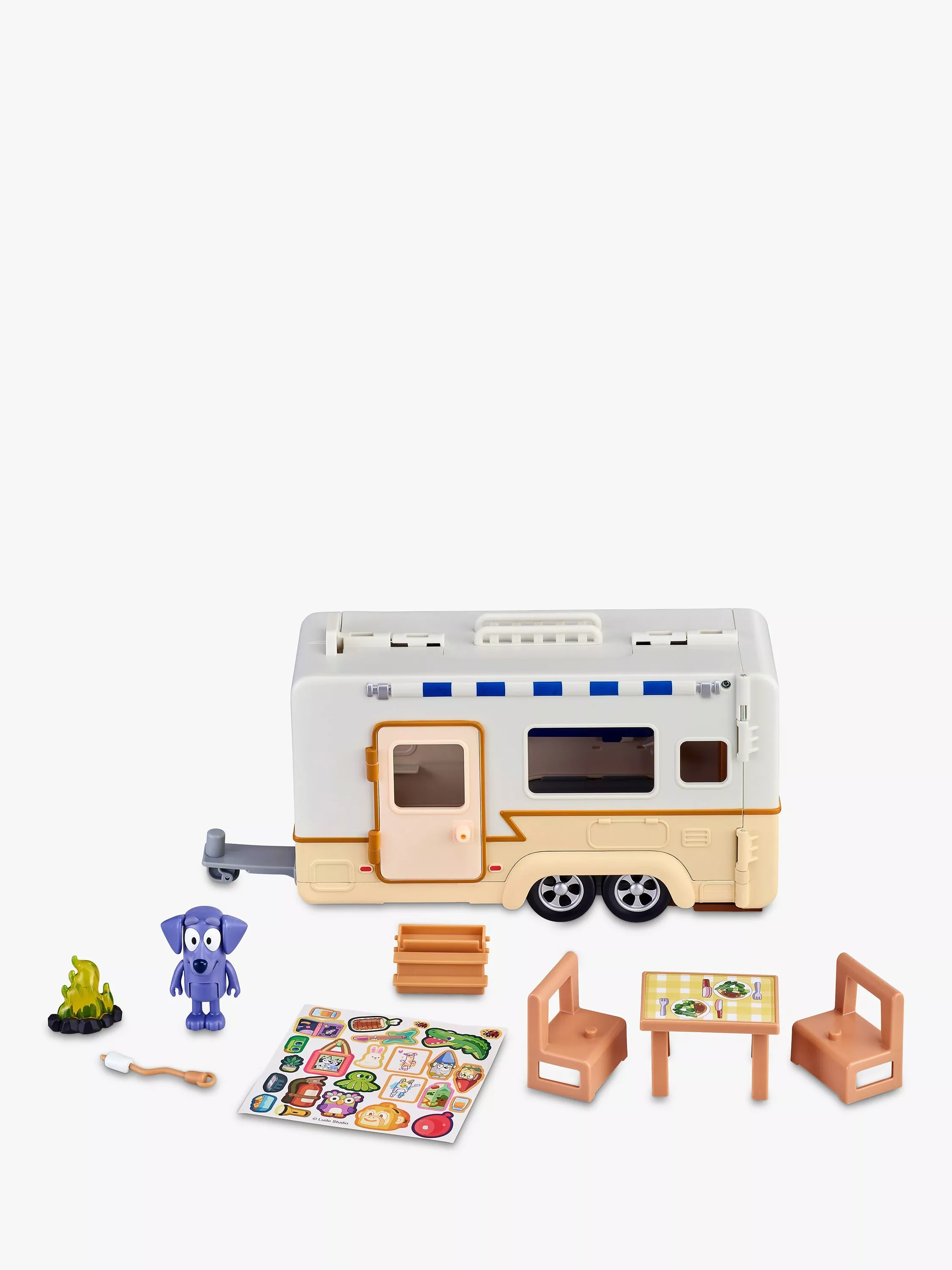 Bluey's Caravan Adventures Playset is loaded with features and things to do as you take a fun caravan holiday and can be customised with the stickers supplied.