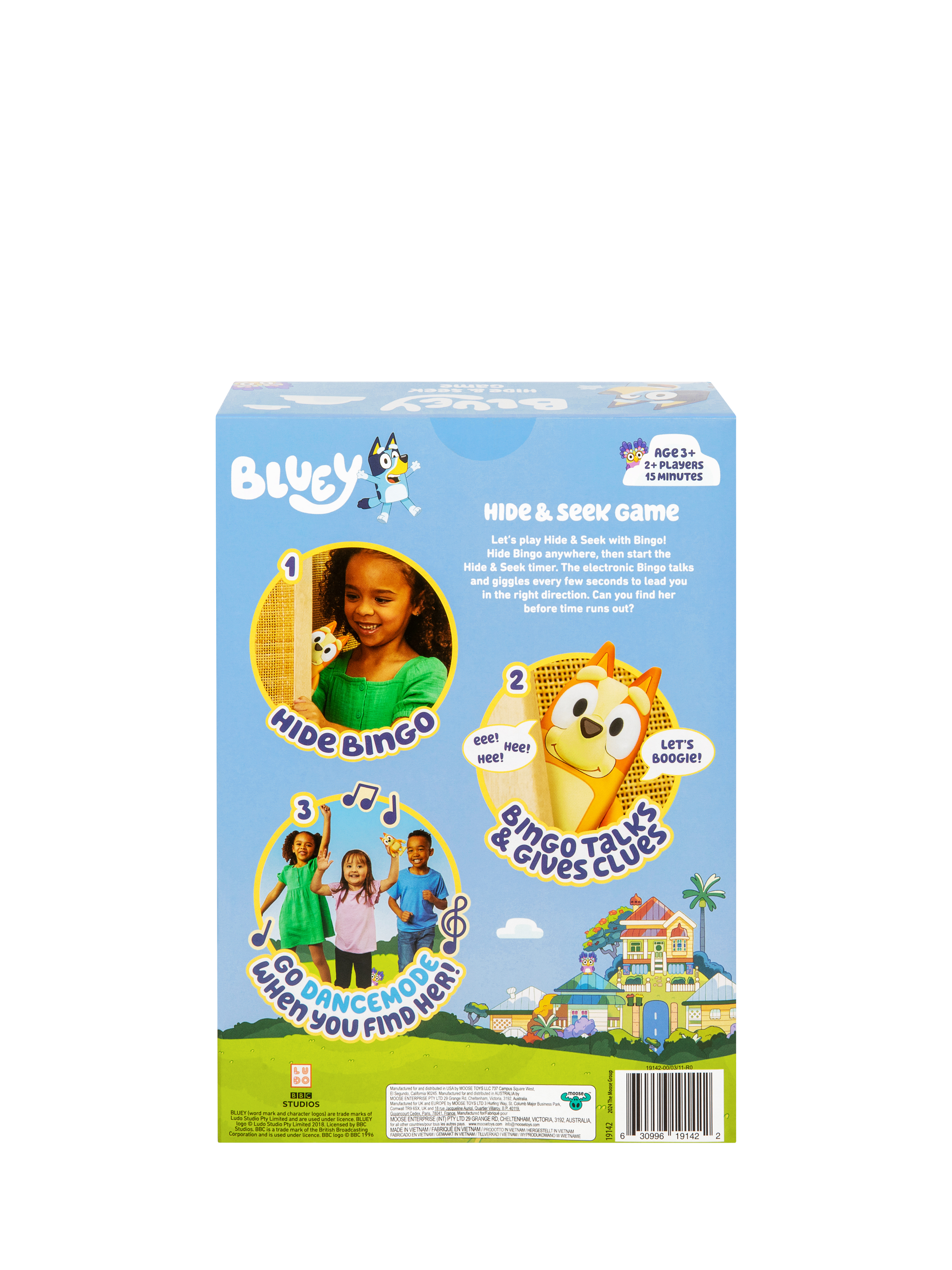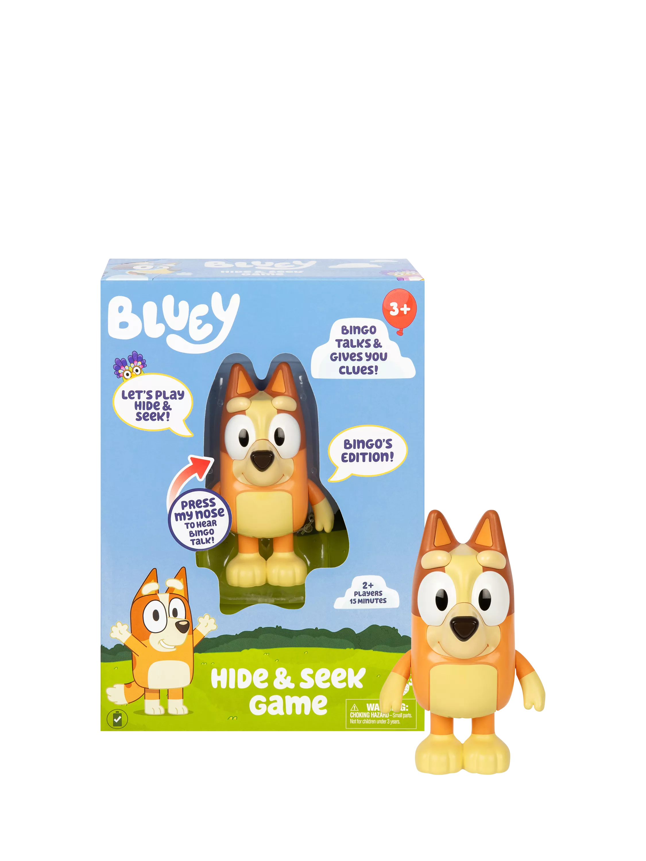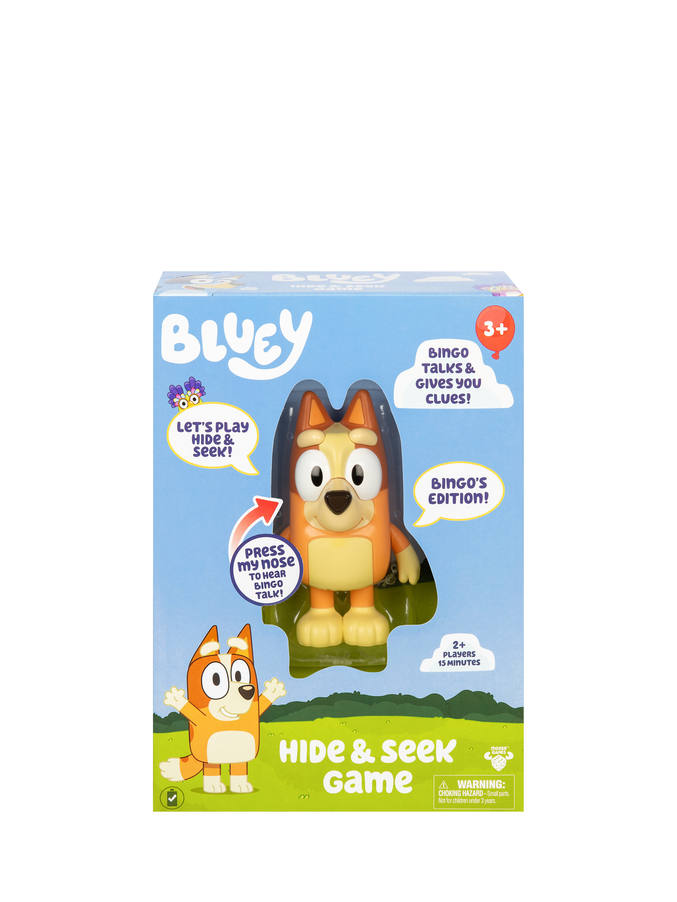 Hide Bingo anywhere and press her nose to start the built-in timer. Bingo talks and giggles every few seconds to help lead you in the right direction to find her. The first person to find Bingo within the time wins.