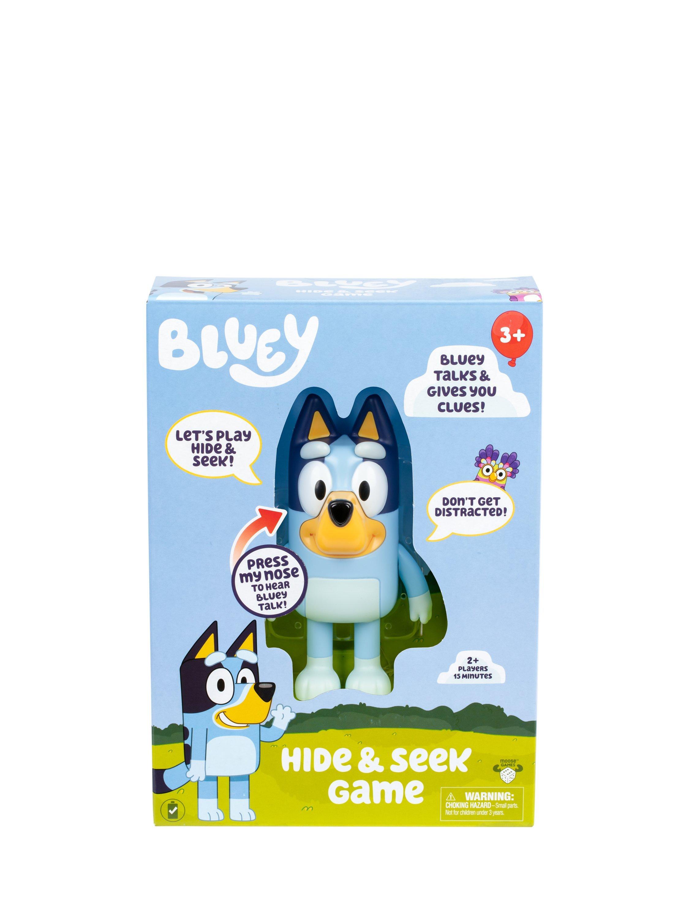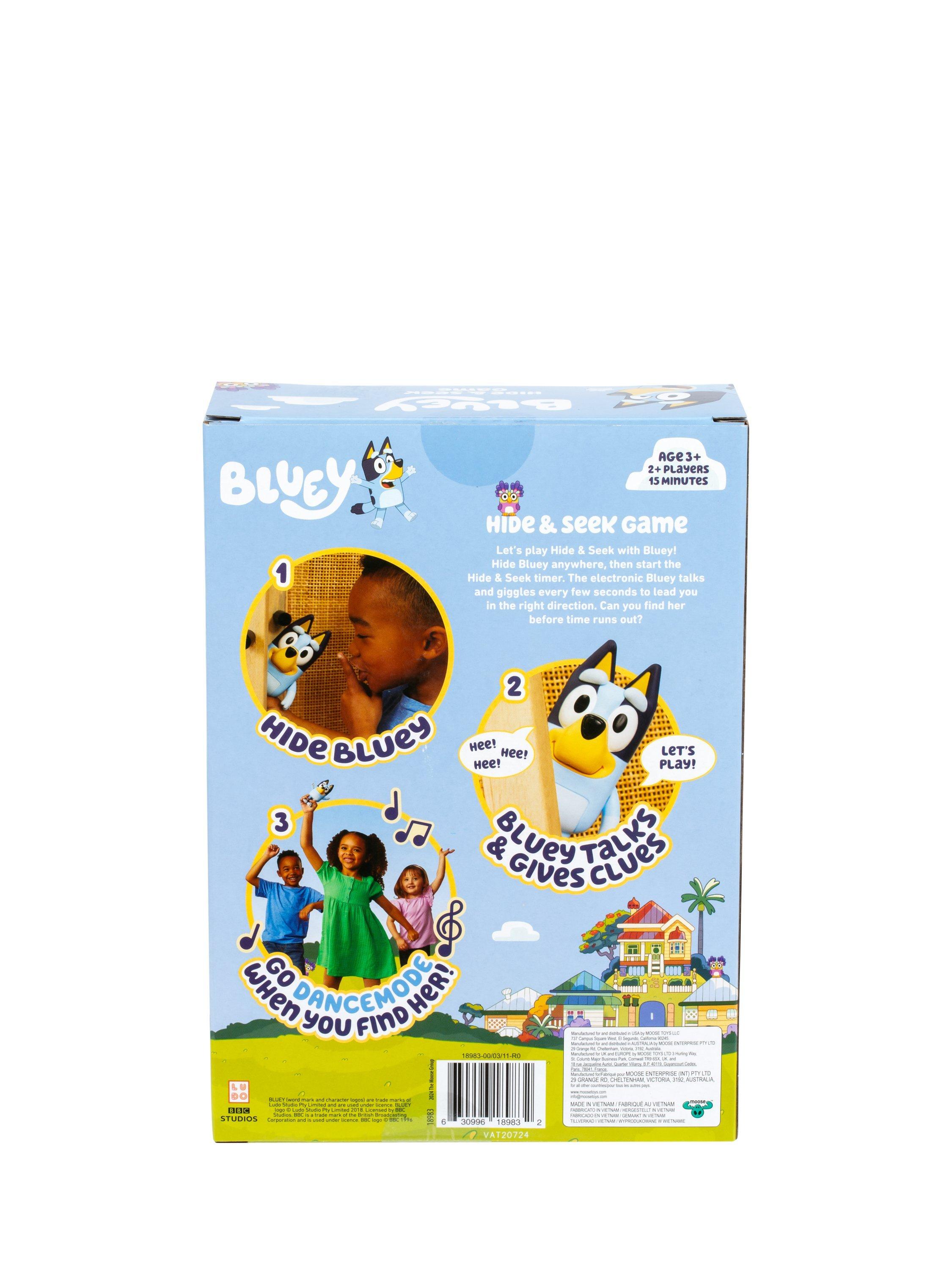 Suitable for ages 3+, this game is perfect for fun and imaginative play. Hide Bluey anywhere and press her nose to start the built-in timer. Bluey talks and giggles every few seconds to help lead you in the right direction to find her. Will your child and their friends find her before the timer runs out? Press her nose again to go into "Dance Mode" so everyone can dance to the Bluey theme-song. For 2 or more players.